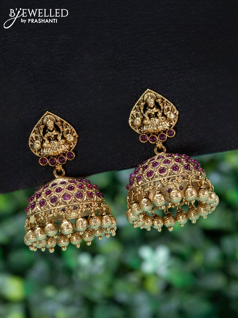 Antique necklace lakshmi pendant with pink kemp stones and pearl hangings