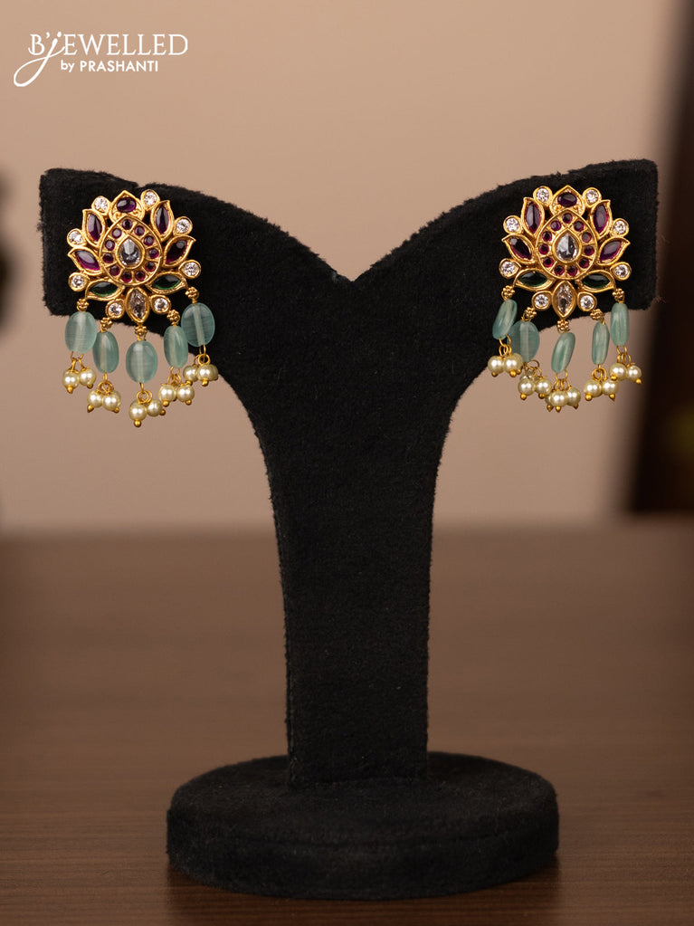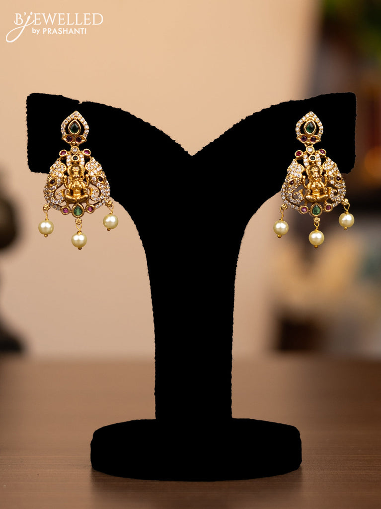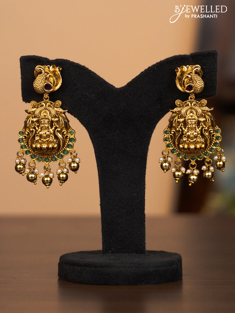 Antique necklace lakshmi pendant with kemp & cz stones and pearl & golden beads hanging