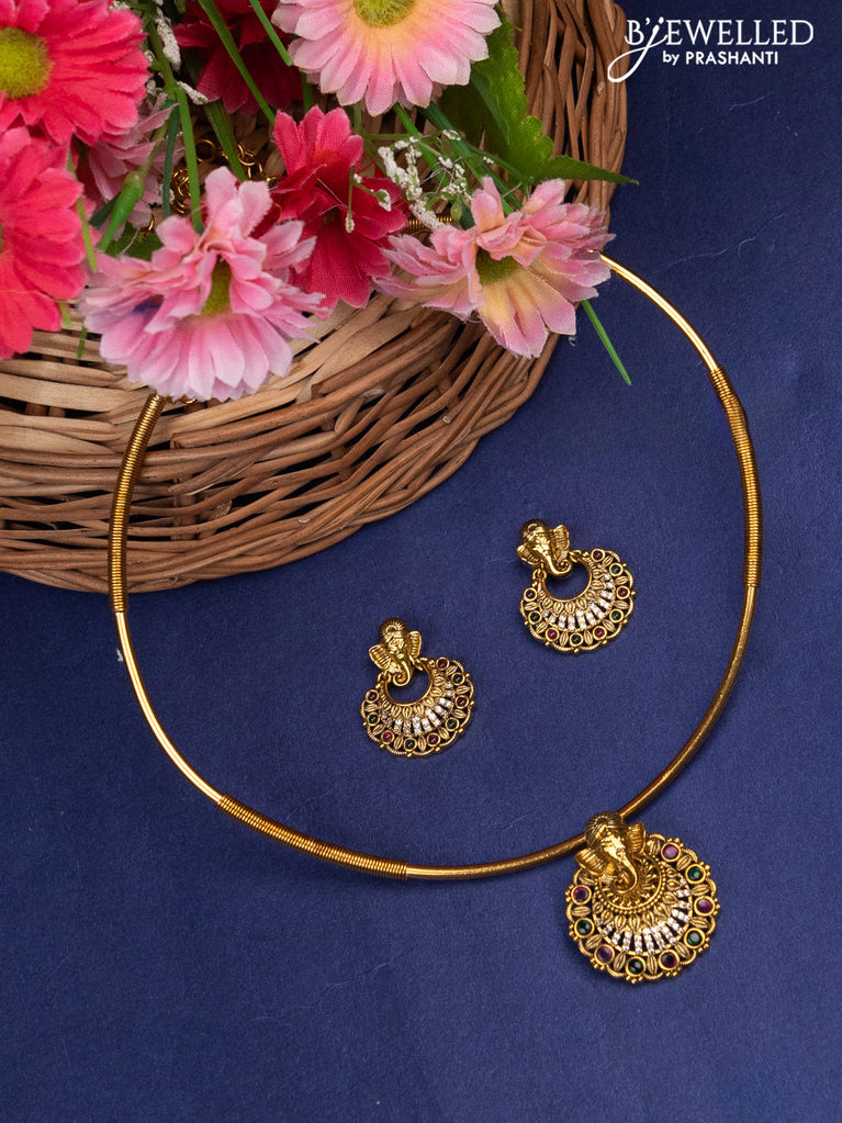 Antique ring type choker ganesha pendant with kemp and cz stone