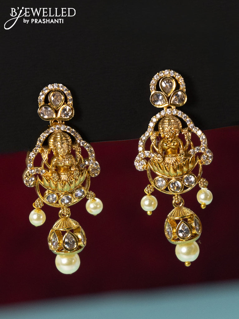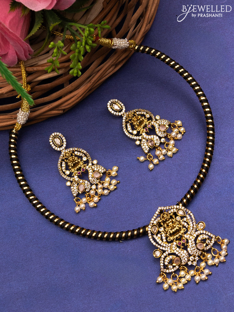 Antique pendant set tirupati balaji design with kemp & cz stones pearl & golden beads hanging