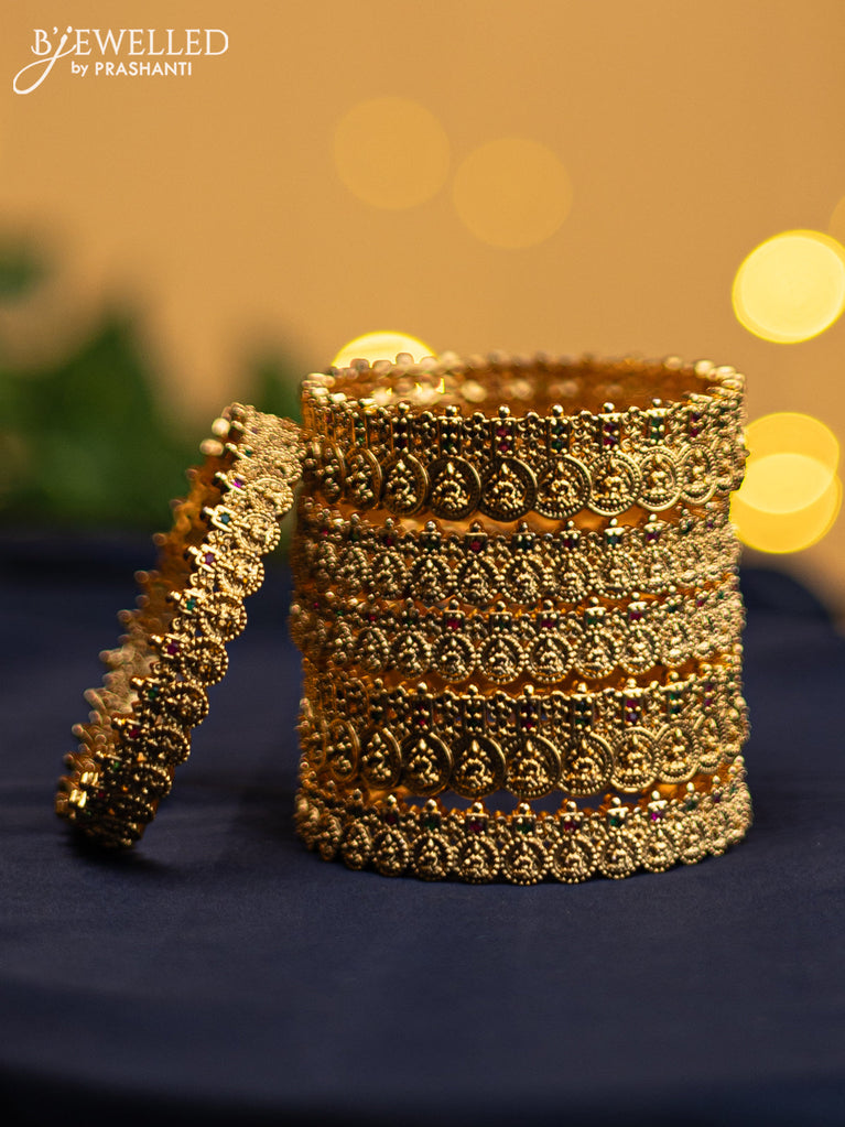 Antique rajawadi bangle lakshmi design with kemp and cz stones