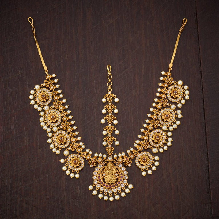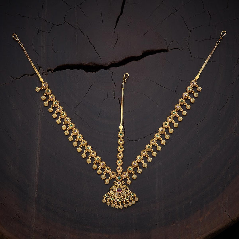 Kushal's Fashion Jewellery Festive Wear Antique TikkaIf you are in love with antique tikkas, then this is the right thing for you. This gorgeous antique tikka will transport you to the realm of luxury. This item's rich workmanship and careful construction give it a sense of classic charm. It goes well with ethnic clothing, letting you stand out in the crowd, and is perfect for festive occasions.