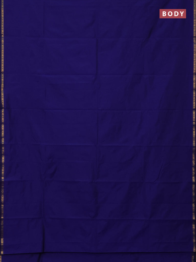 Arani semi silk saree blue and dark mustard with plain body and zari woven simple border