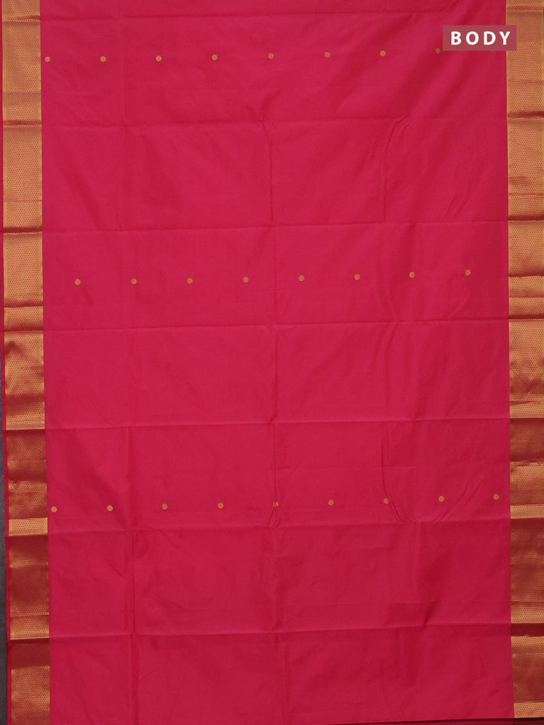 Arani semi silk saree dark pink with rudhraksha & paisley zari woven buttas and zari woven border