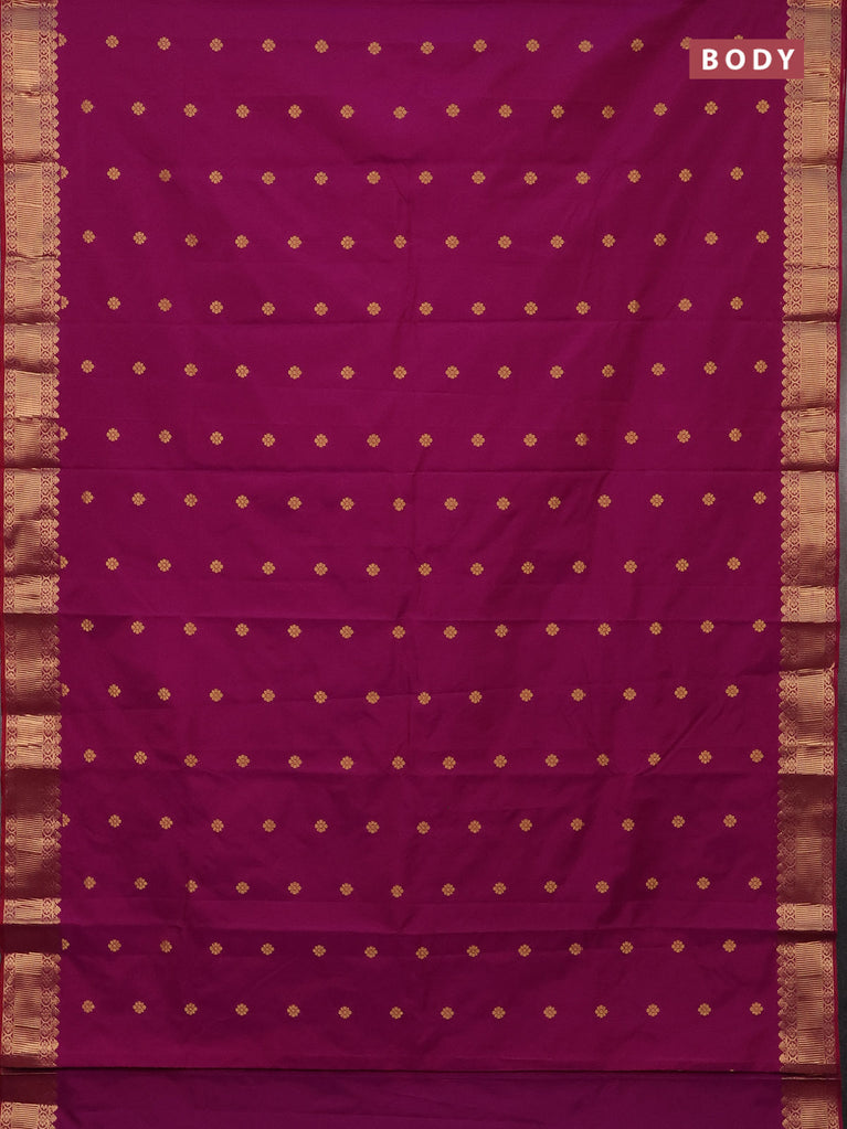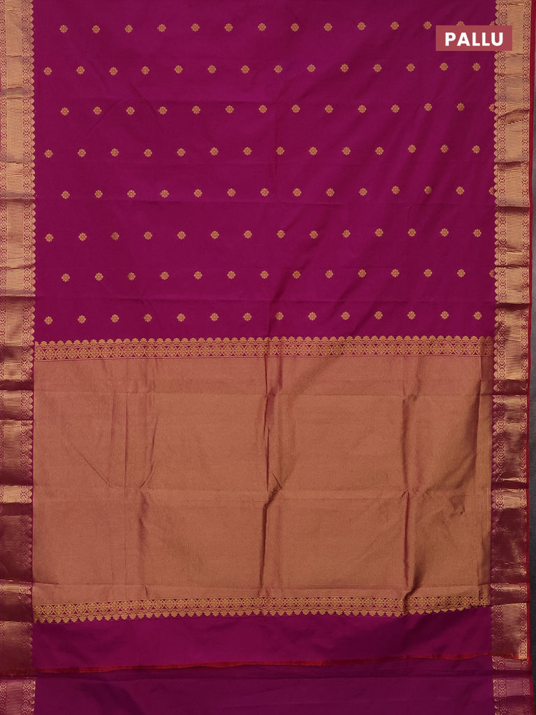 Arani semi silk saree dark magenta pink with silver zari woven buttas in borderless style