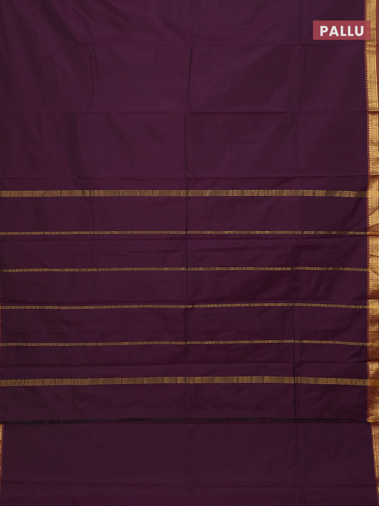 Arani semi silk saree deep purple and dark mustard with plain body and zari woven simple border