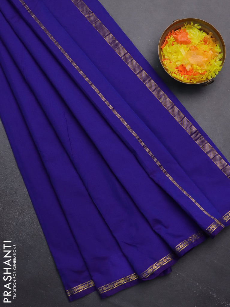 Arani semi silk saree royal blue with plain body and small zari woven border