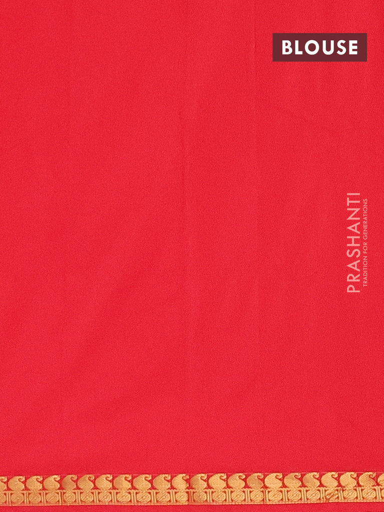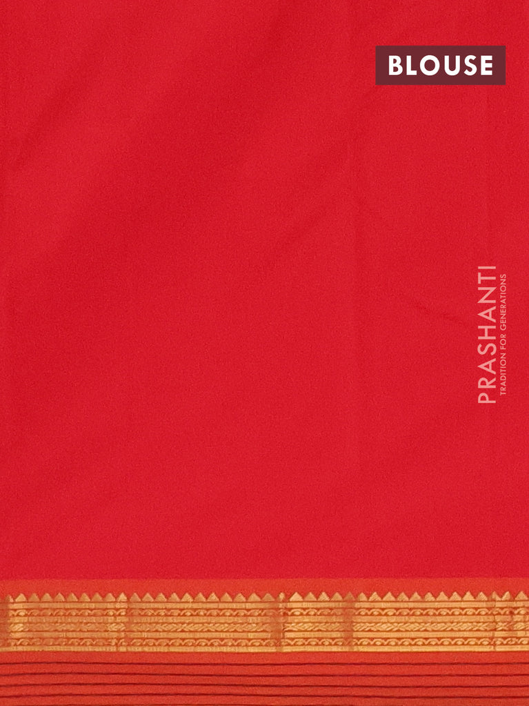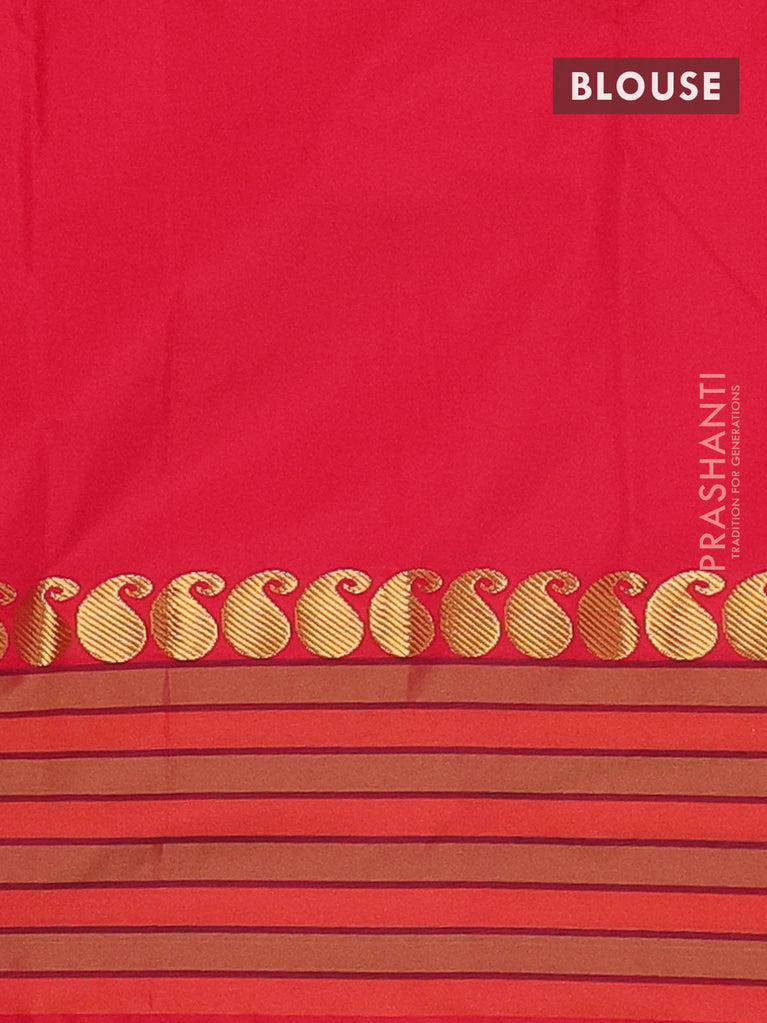 Arani semi silk saree red and light green with plain body and paisley zari woven simple border