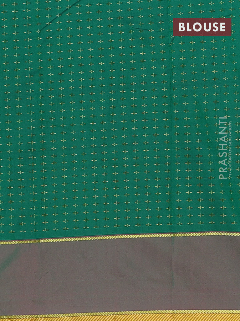 Arani semi silk saree rust shade and green with allover thread weaves and rettapet zari woven border`