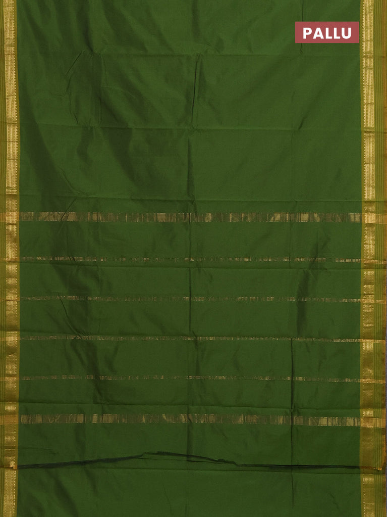 Arani semi silk saree sap green and dark mustard with plain body and zari woven simple border
