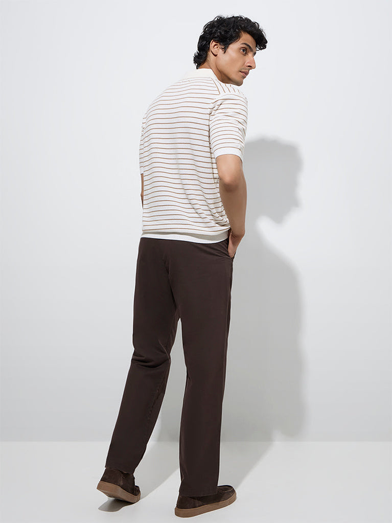 These brown chinos from Ascot are constructed from a rich cotton-blend fabric and tailored in a relaxed silhouette for everyday comfort. Designed with a solid finish, they feature a smooth buttoned waistband, zipper fly, belt loops, and multiple pockets for a clean and functional look.