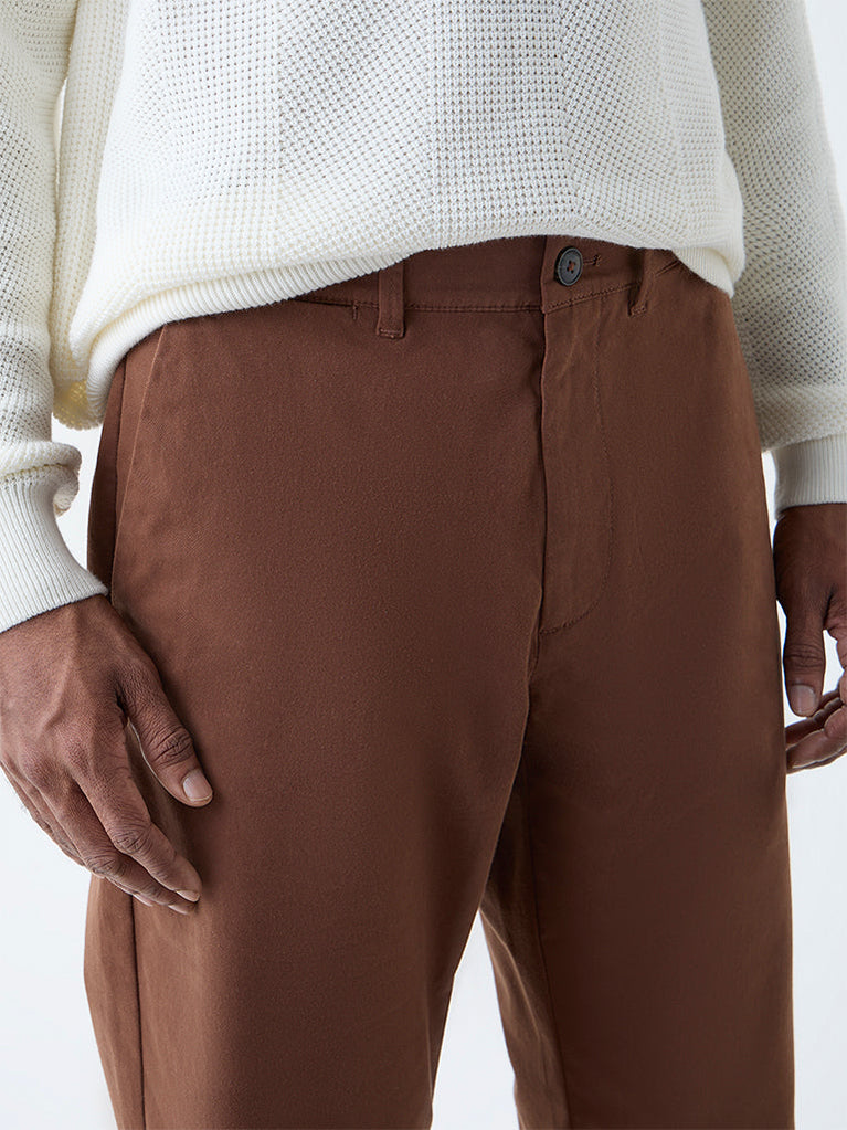 Ascot Brown Relaxed-Fit Mid-Rise Cotton-Blend Chinos