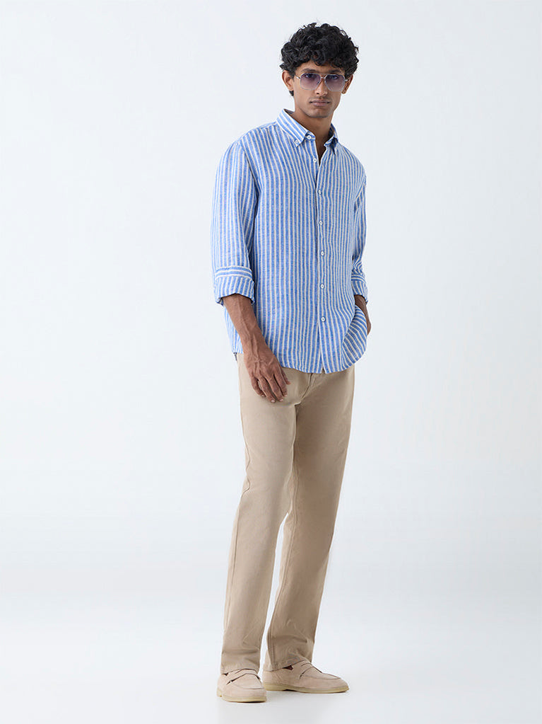 Ascot Blue Striped Relaxed-Fit Linen Shirt