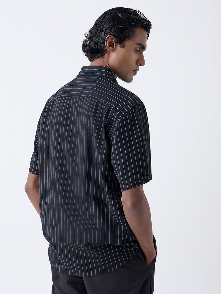 Ascot Black Striped Relaxed-Fit Shirt