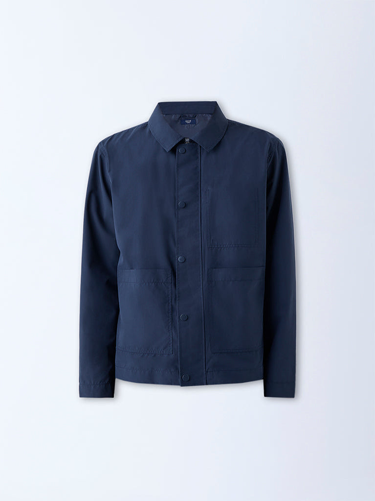 Elevated and intentional, this navy jacket from Ascot redefines casual tailoring. Crafted from premium fabric in a relaxed silhouette, it features a structured collar, full-length sleeves, and dual welt pockets. A concealed zip front sits beneath a traditional button placket, offering a clean finish with subtle edge.