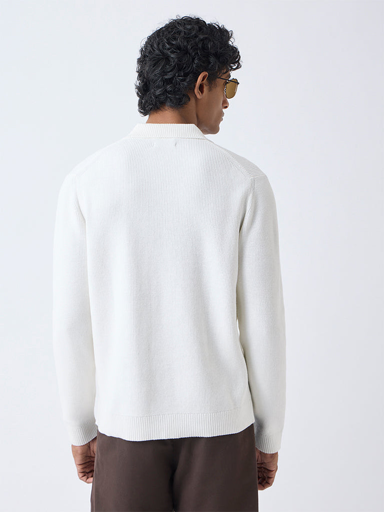 Ascot Off-White Relaxed-Fit Cotton Polo Sweater
