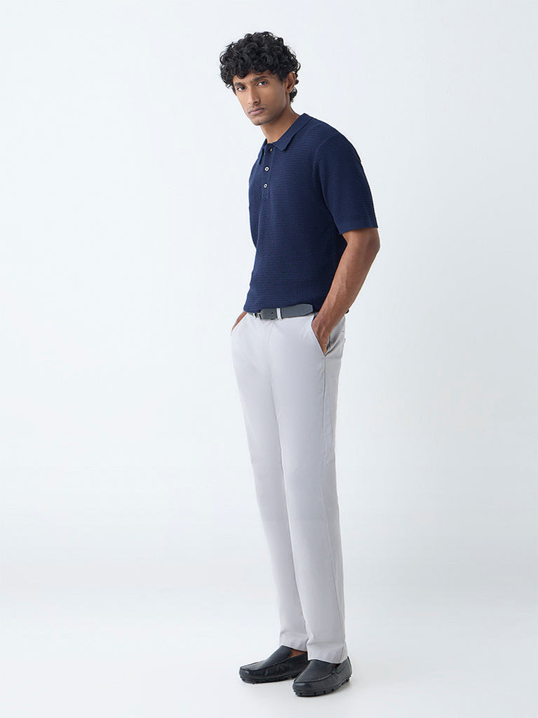 Ascot Navy Textured Relaxed-Fit Cotton-Blend Polo T-Shirt