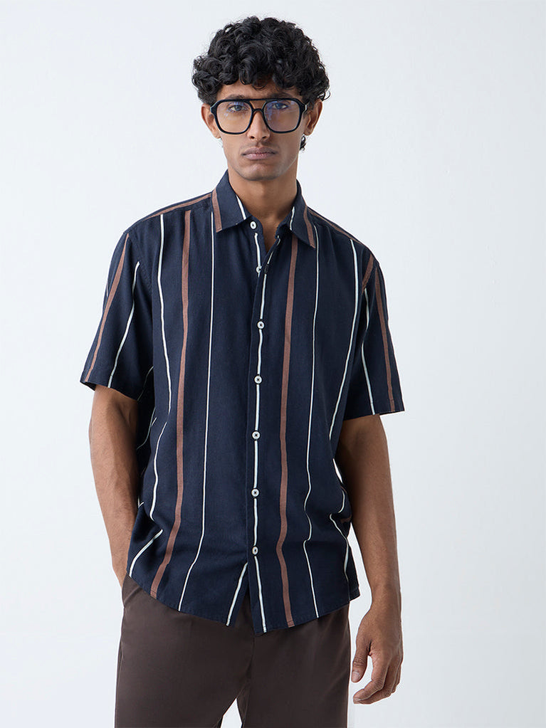 Ascot Navy Stripe Relaxed-Fit Shirt
