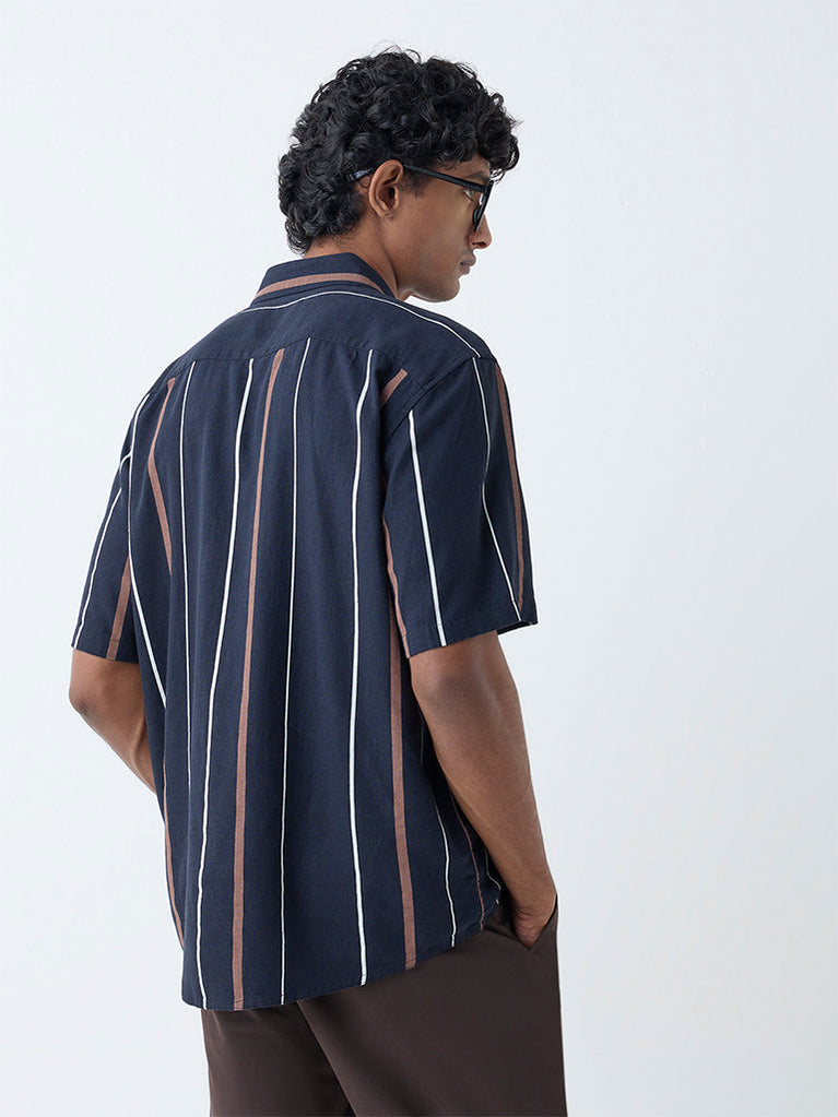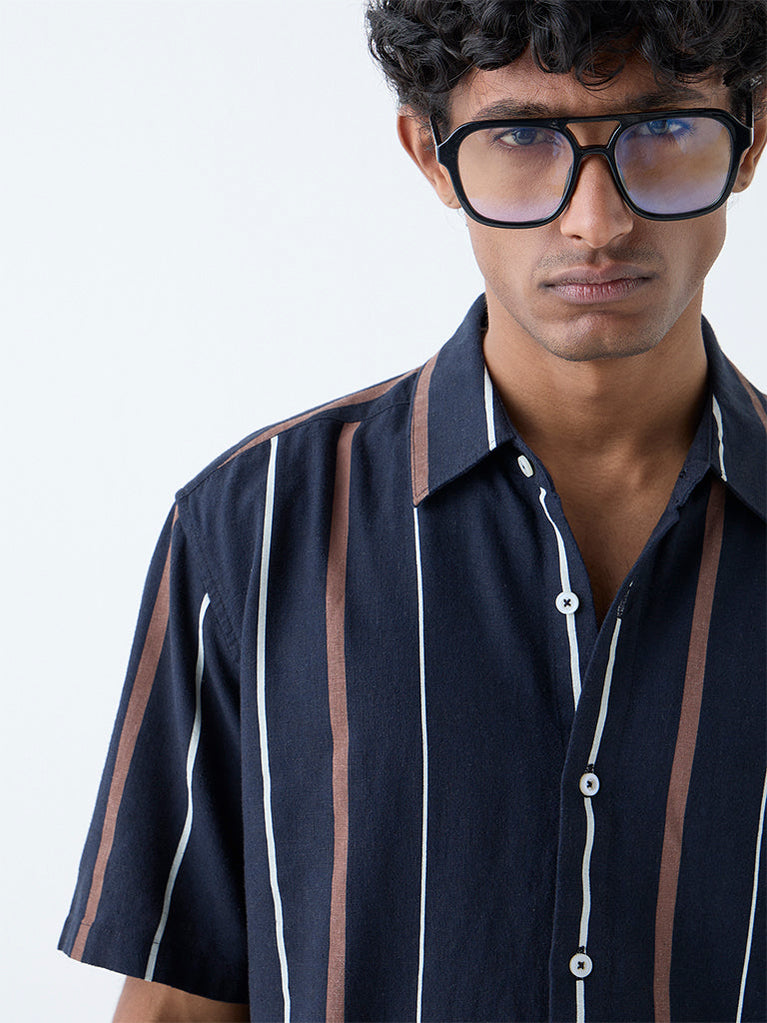 Ascot Navy Striped Relaxed-Fit Linen Shirt