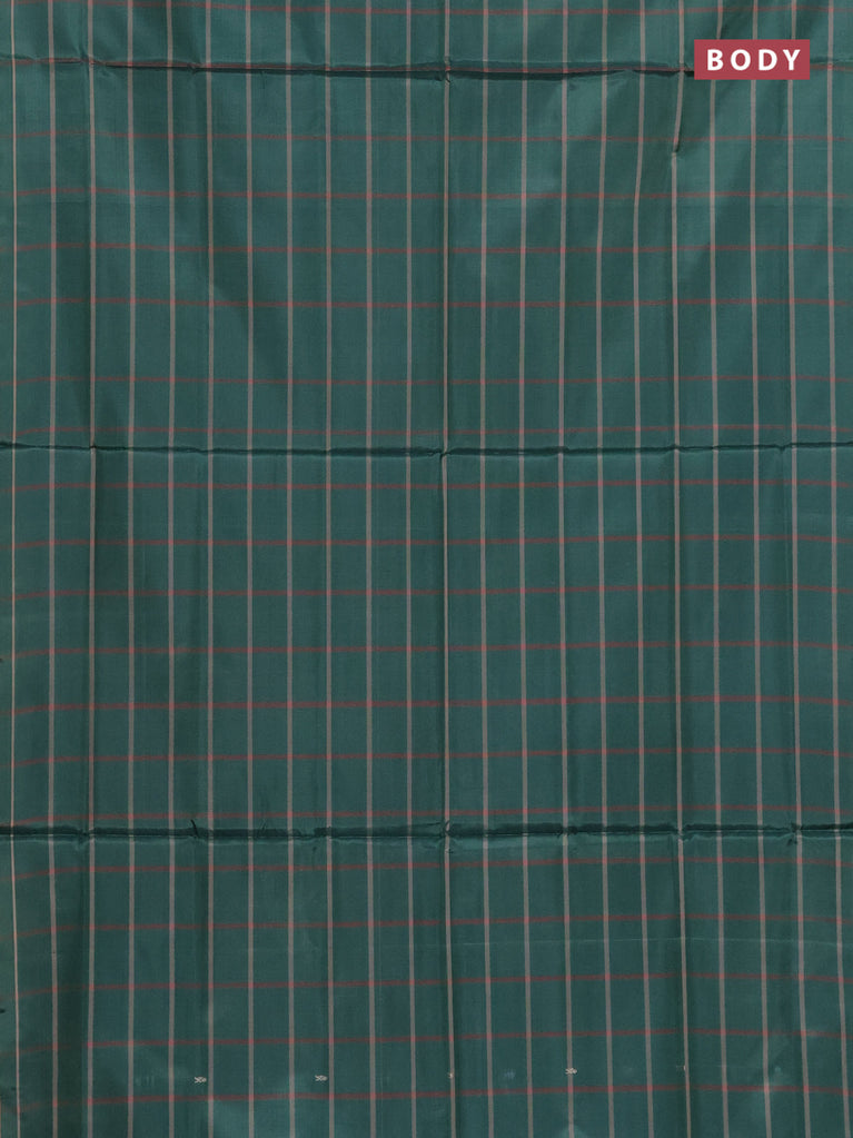 Banana pith saree bottle green and pastel maroon with allover checked pattern and piping border