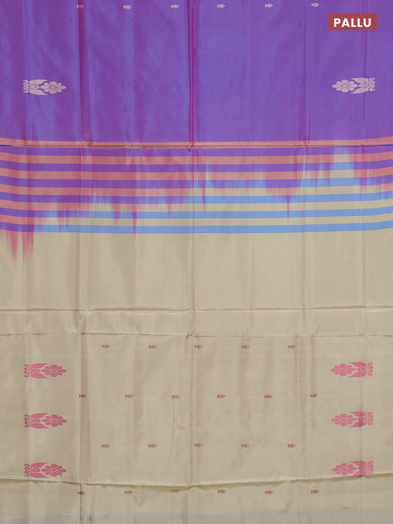 Banana pith saree dual shade of purple and cream with thread woven buttas in borderless style