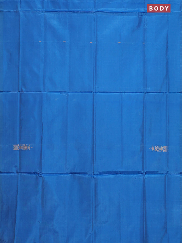 Banana pith saree blue shade and dual shade of greenish violet with thread woven buttas and contrast border