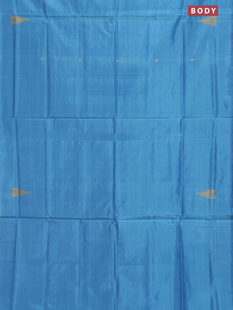 Banana pith saree blue and light green with allover thread woven butta weaves in borderless style
