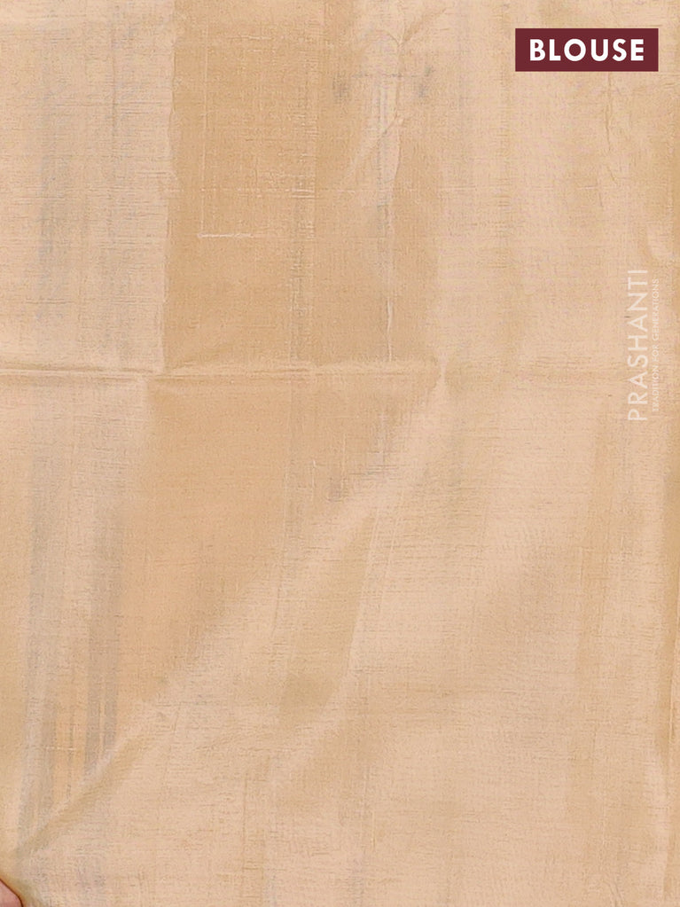 Banana pith saree cs blue and sandal with thread woven buttas in borderless style