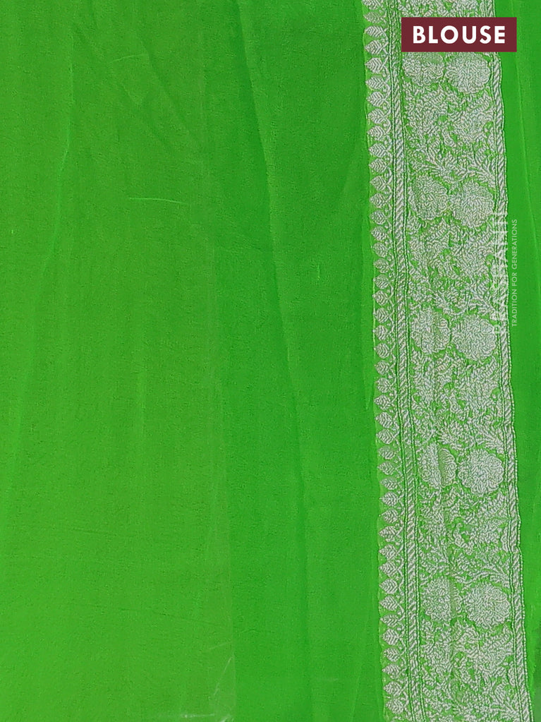Banarasi chiffon silk saree light green with silver zari woven buttas and floral silver zari woven border