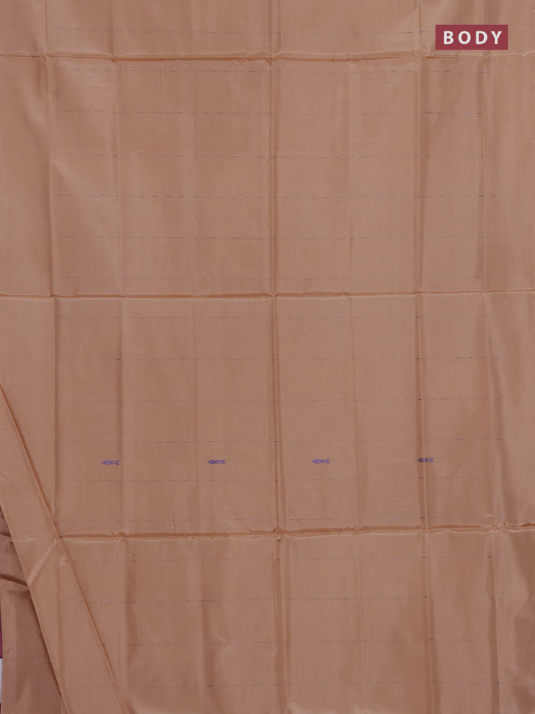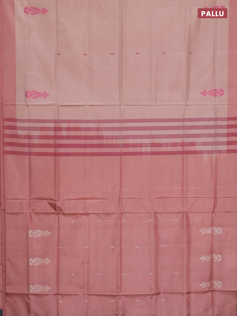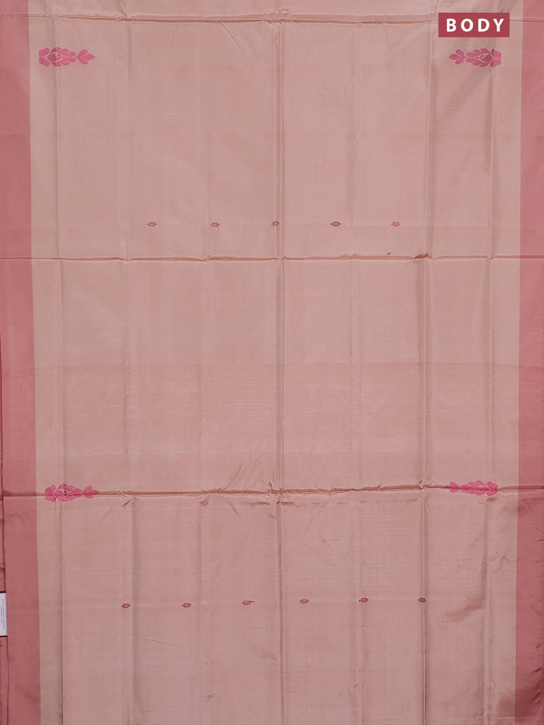 Banana pith saree sandal and pastel peach with thread woven buttas and contrast border