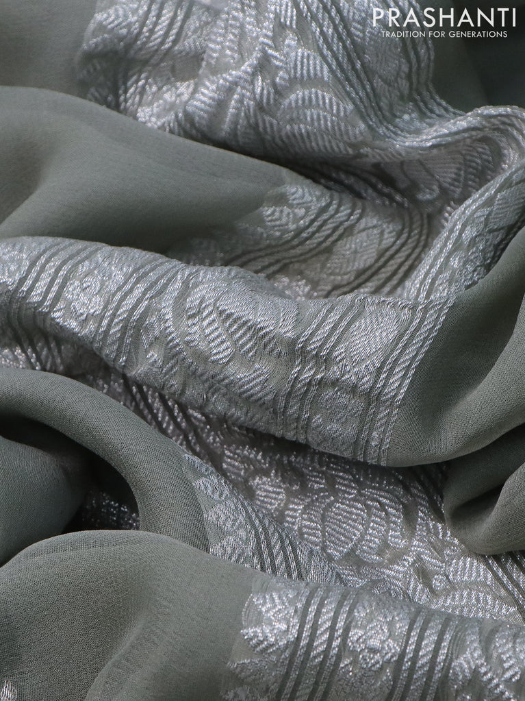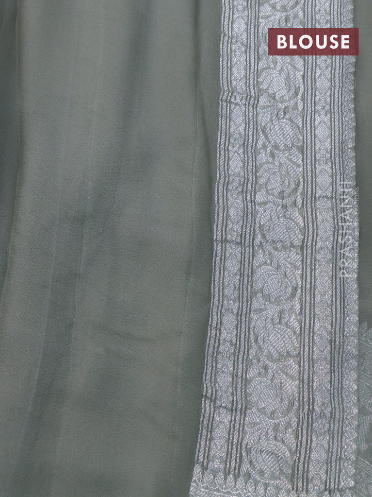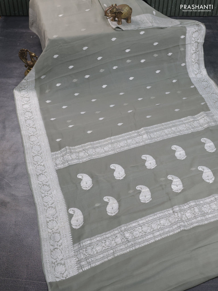 Banarasi chiffon saree grey shade with silver zari woven buttas and silver zari woven border