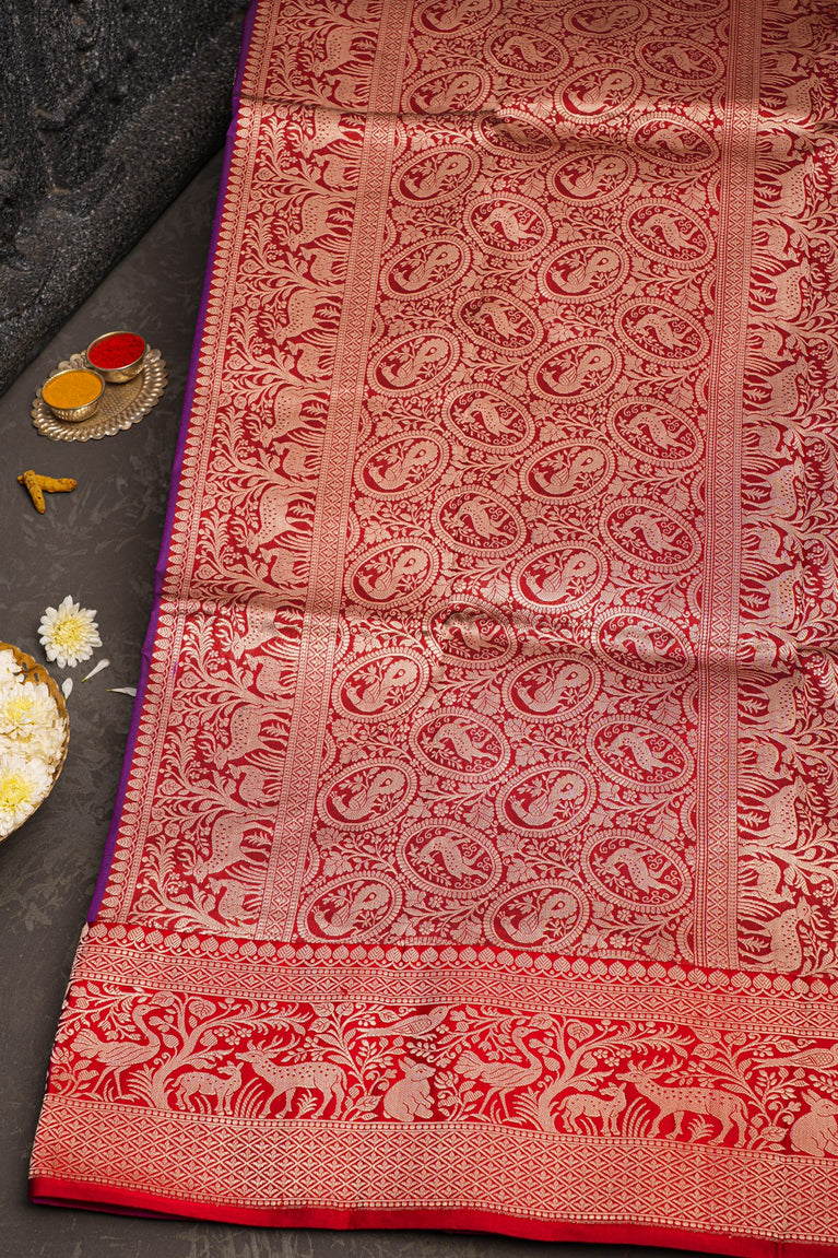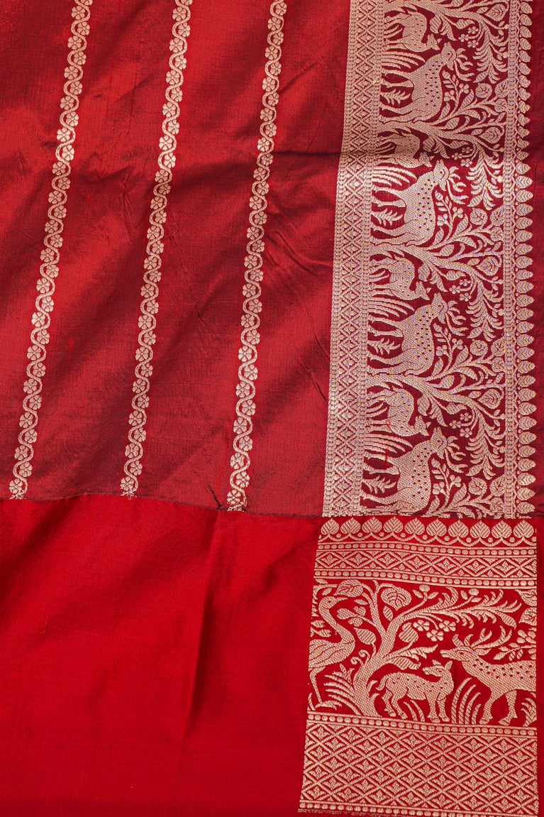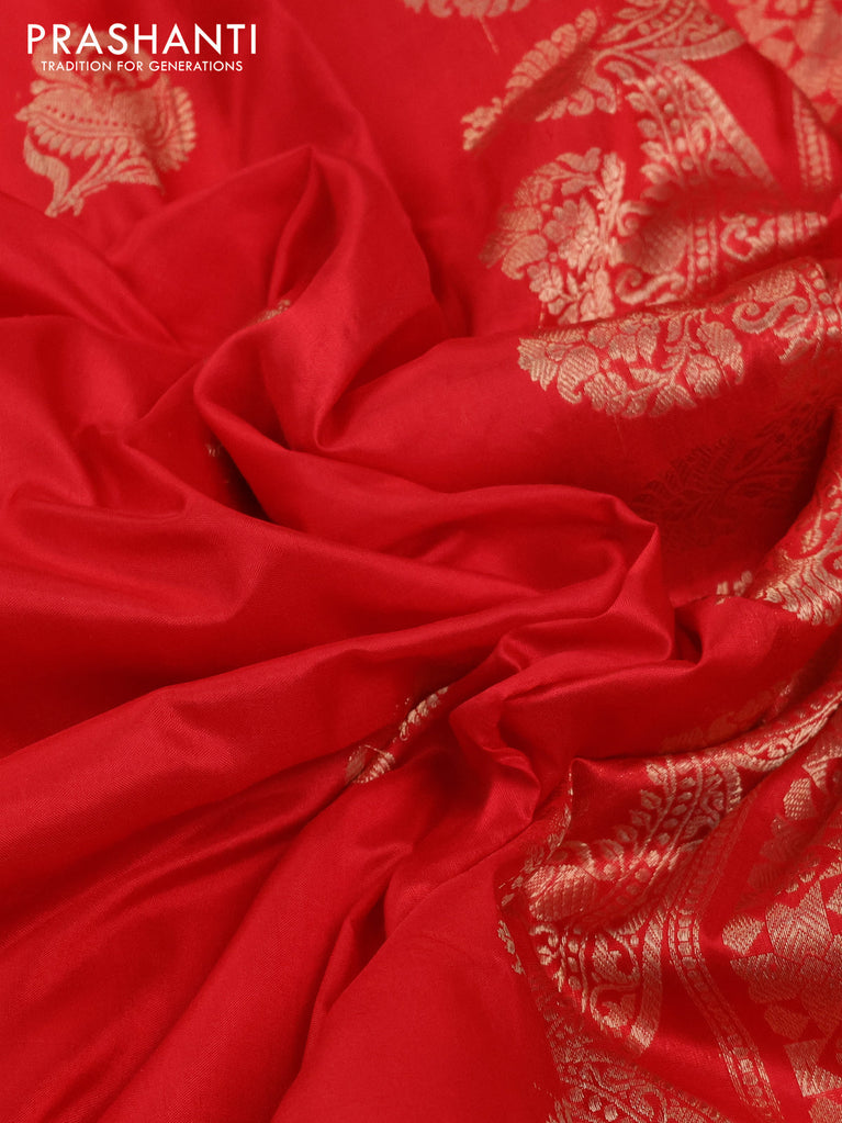 Banarasi katan silk saree red with allover zari woven brocade weaves and zari woven butta border