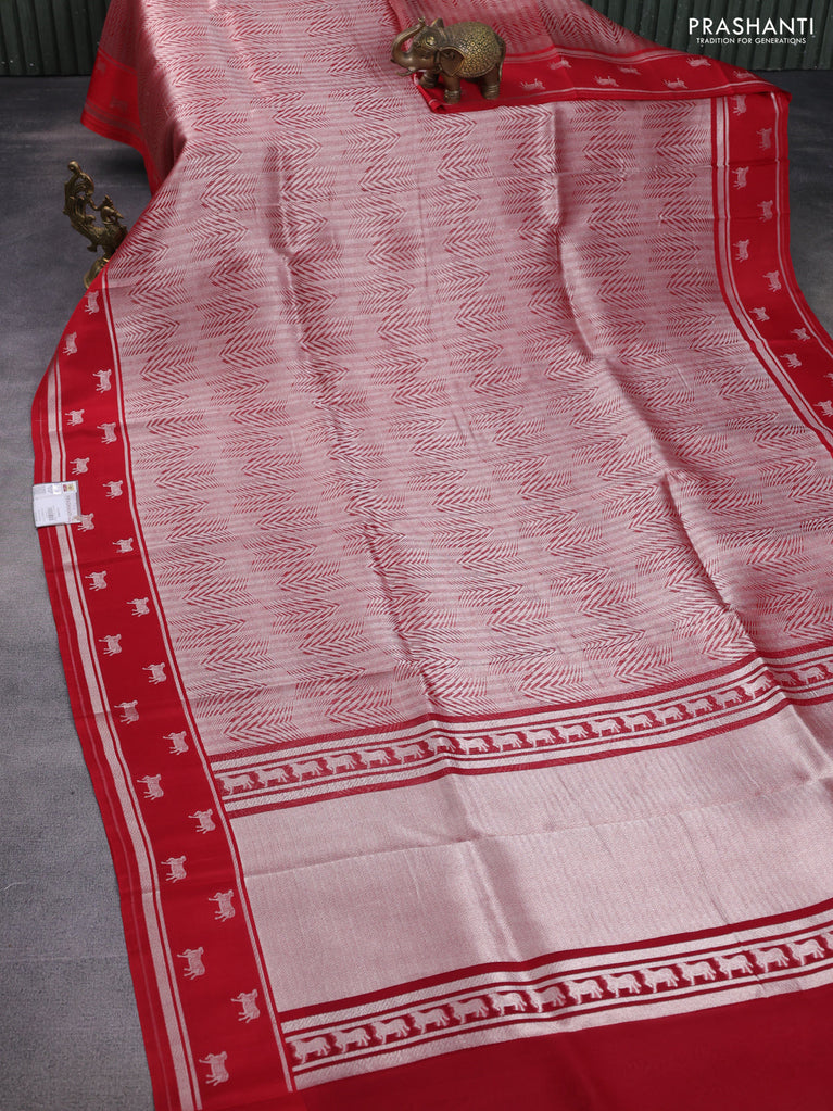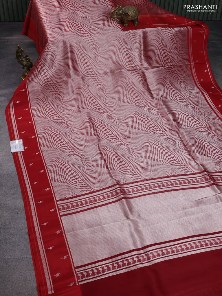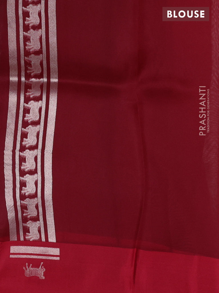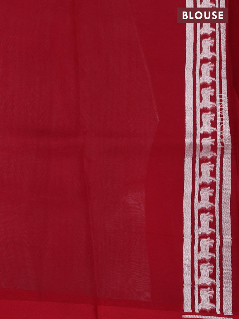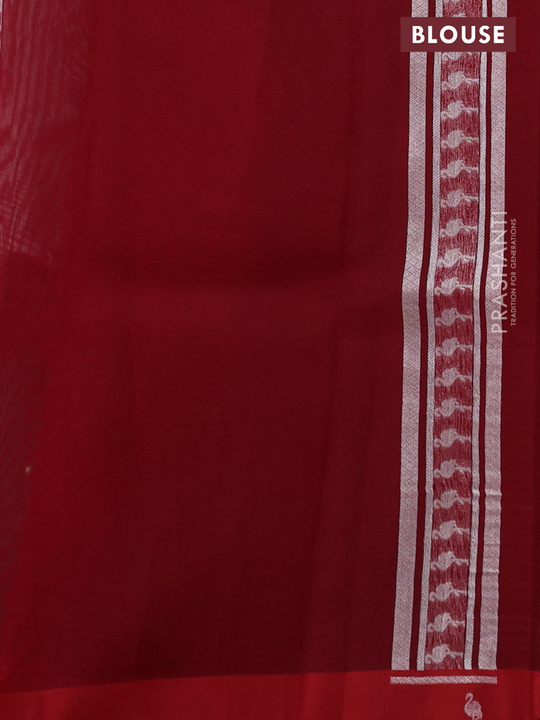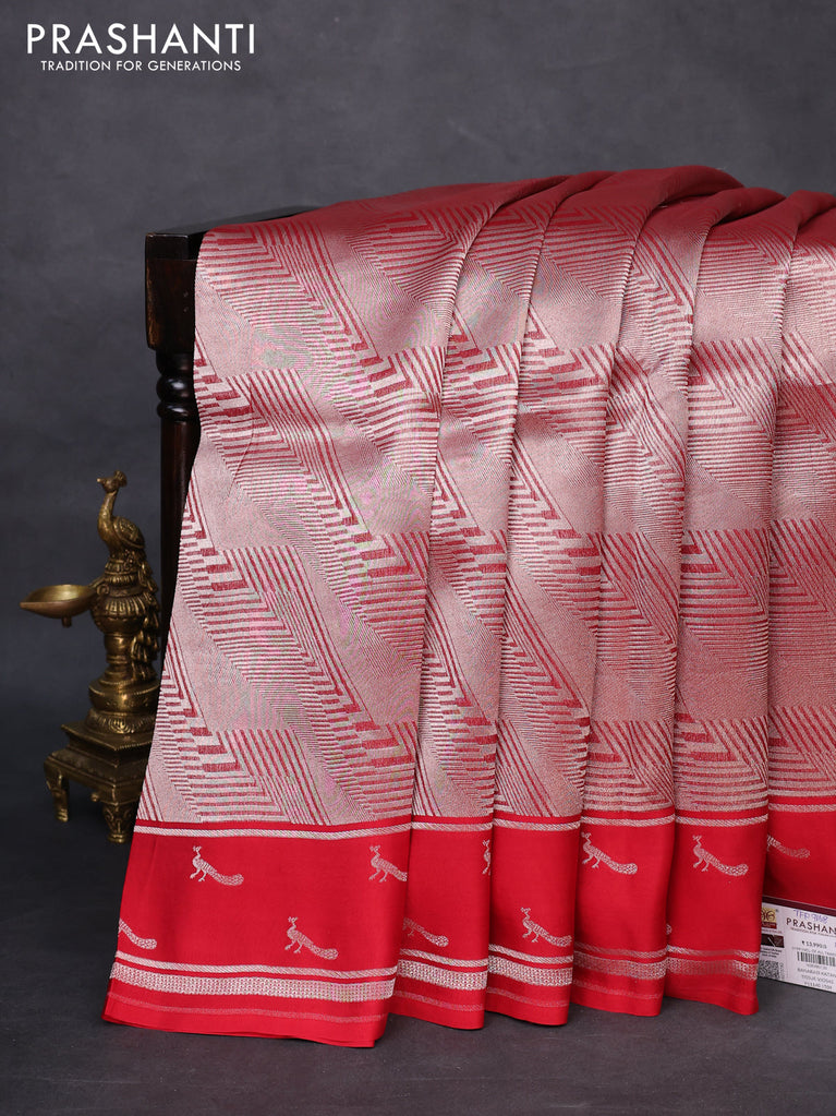 Banarasi katan silk saree red with allover silver zari woven brocade weaves and zari woven butta border
