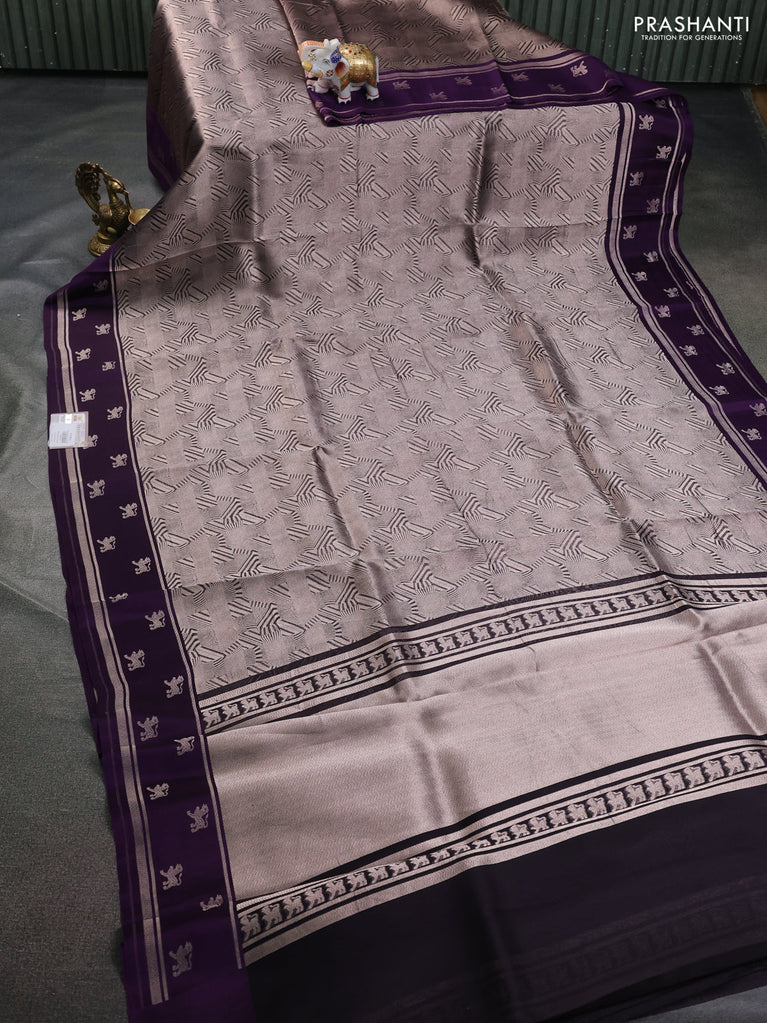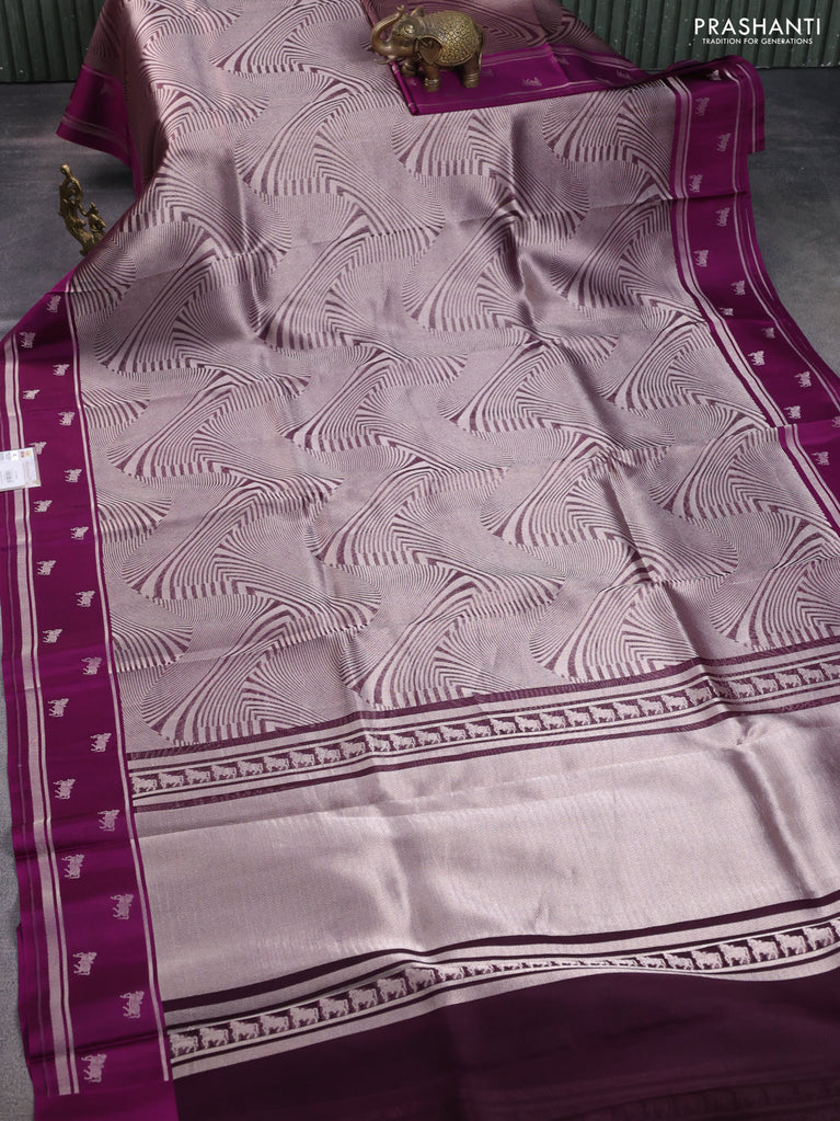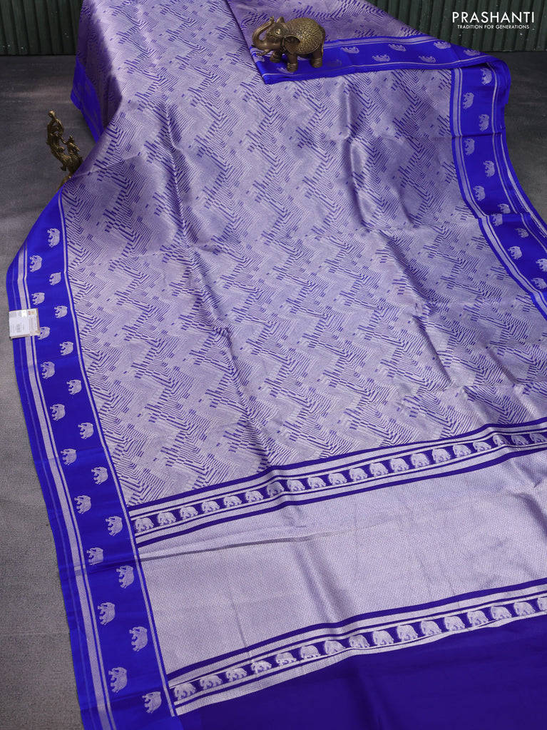 Banarasi katan silk saree purple with allover silver zari woven brocade weaves and zari woven butta border