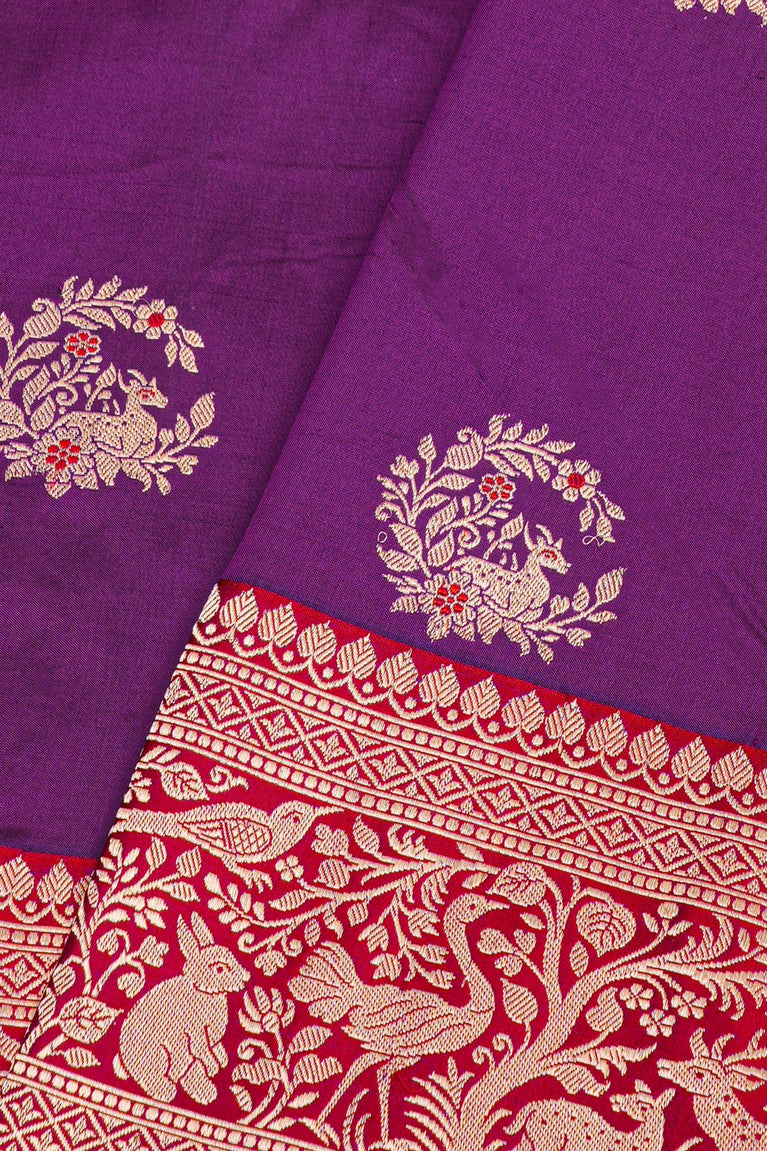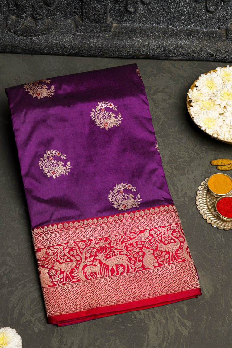 Banarasi katan silk saree violet with allover zari woven brocade weaves and zari woven butta border