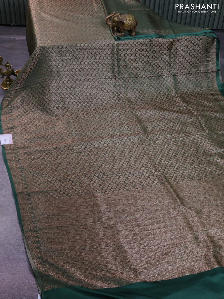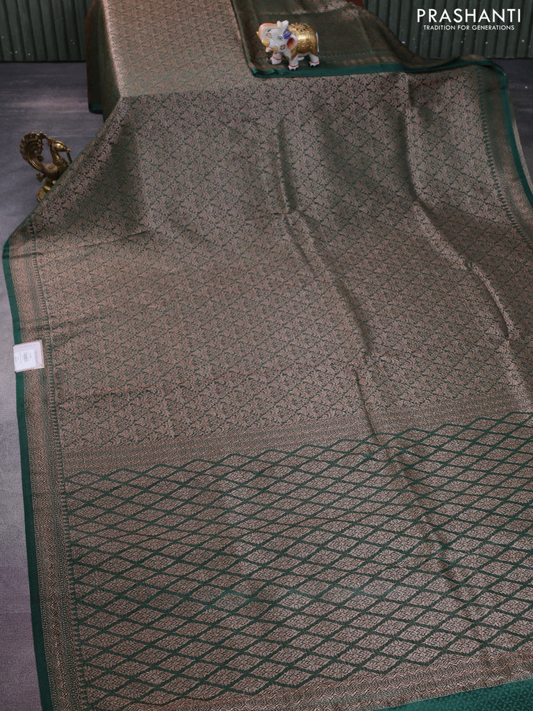Banarasi semi crepe saree dark green with allover thread & zari woven brocade weaves and woven border