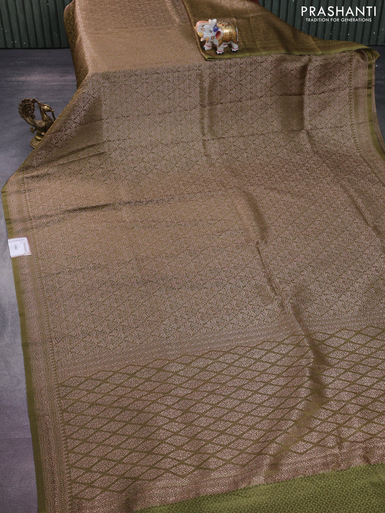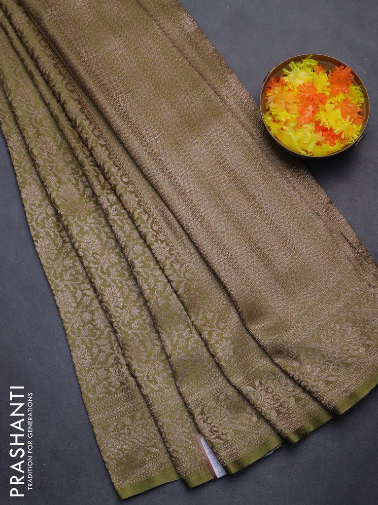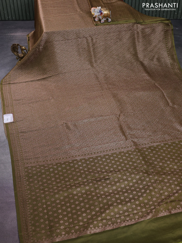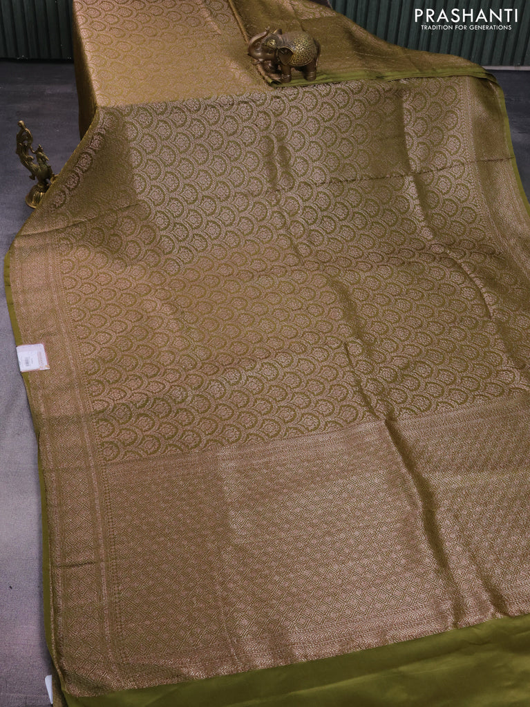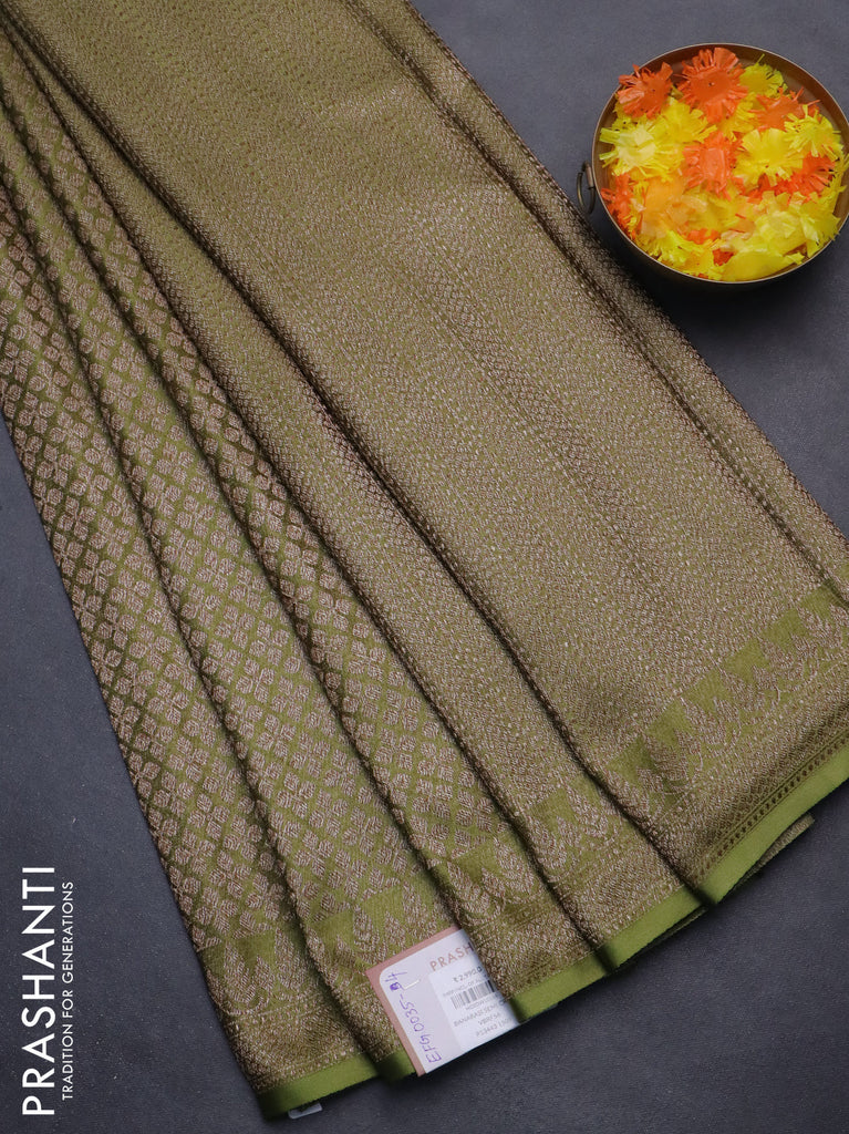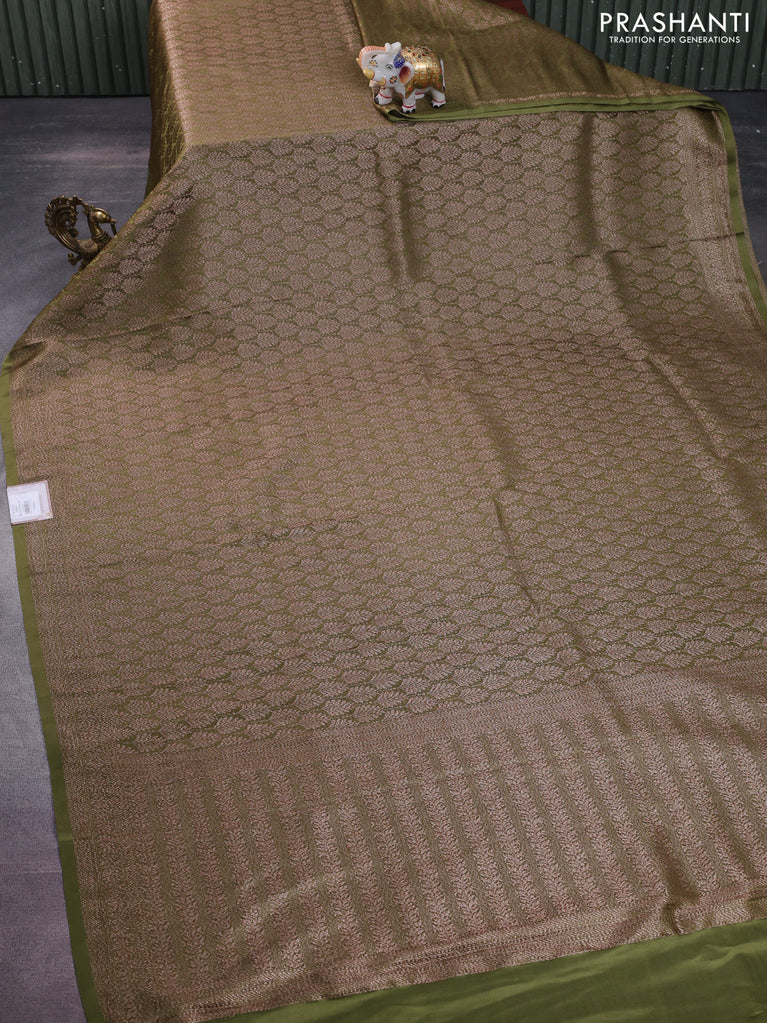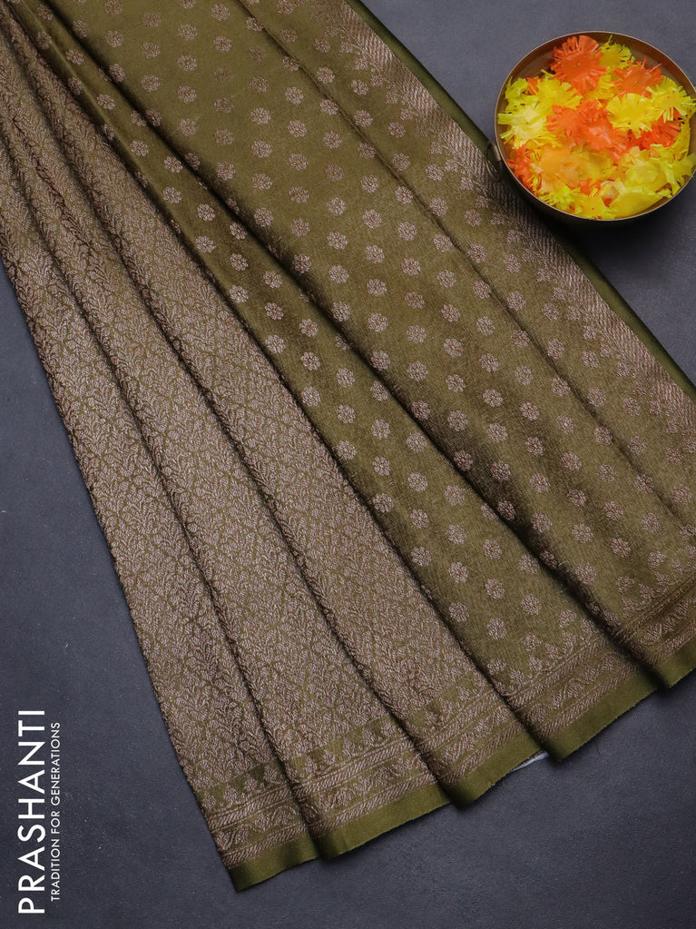 Banarasi semi crepe saree miltary green with allover thread & zari woven brocade weaves and woven border