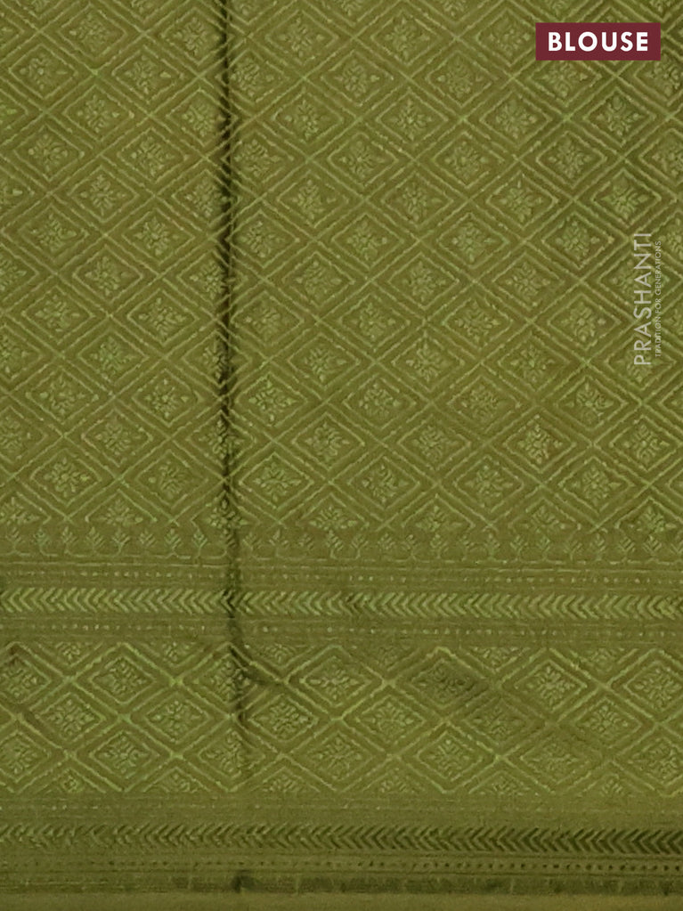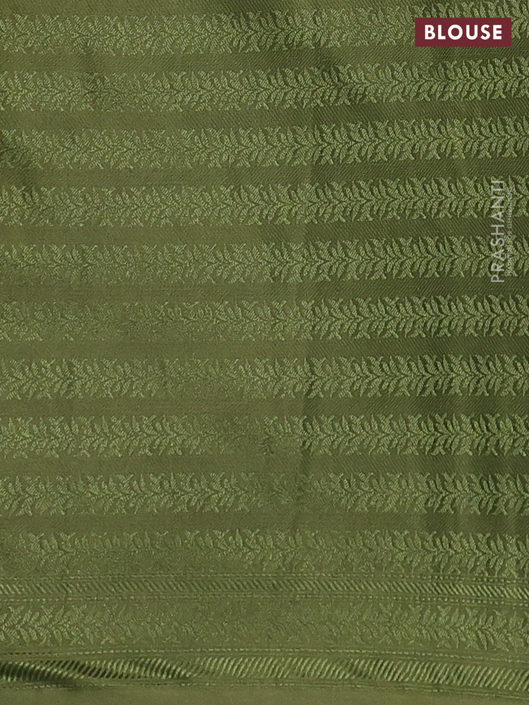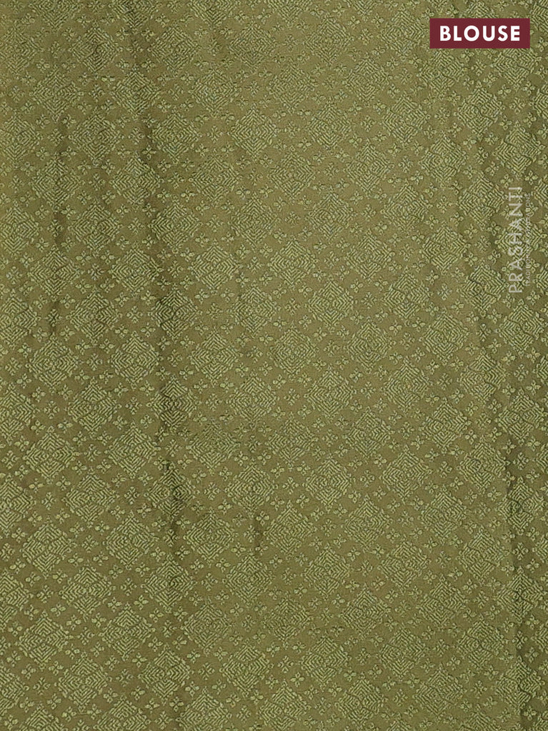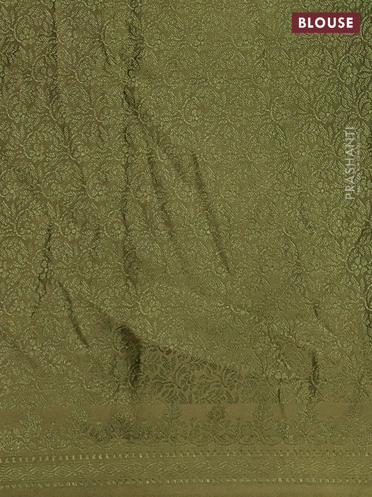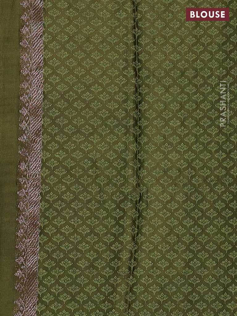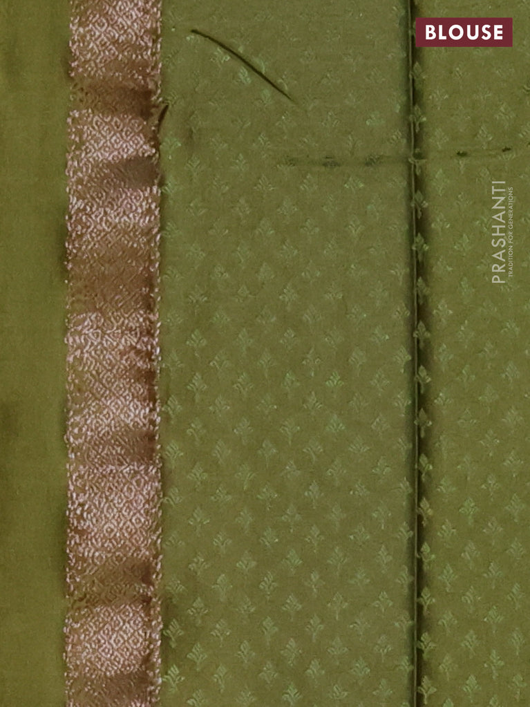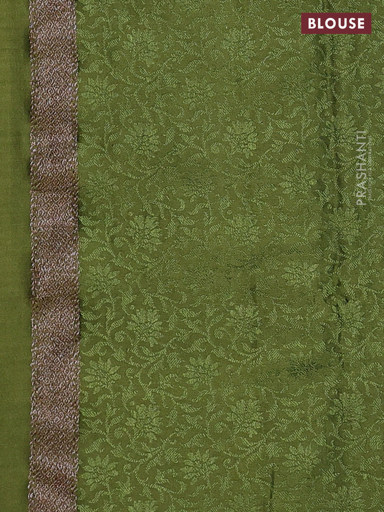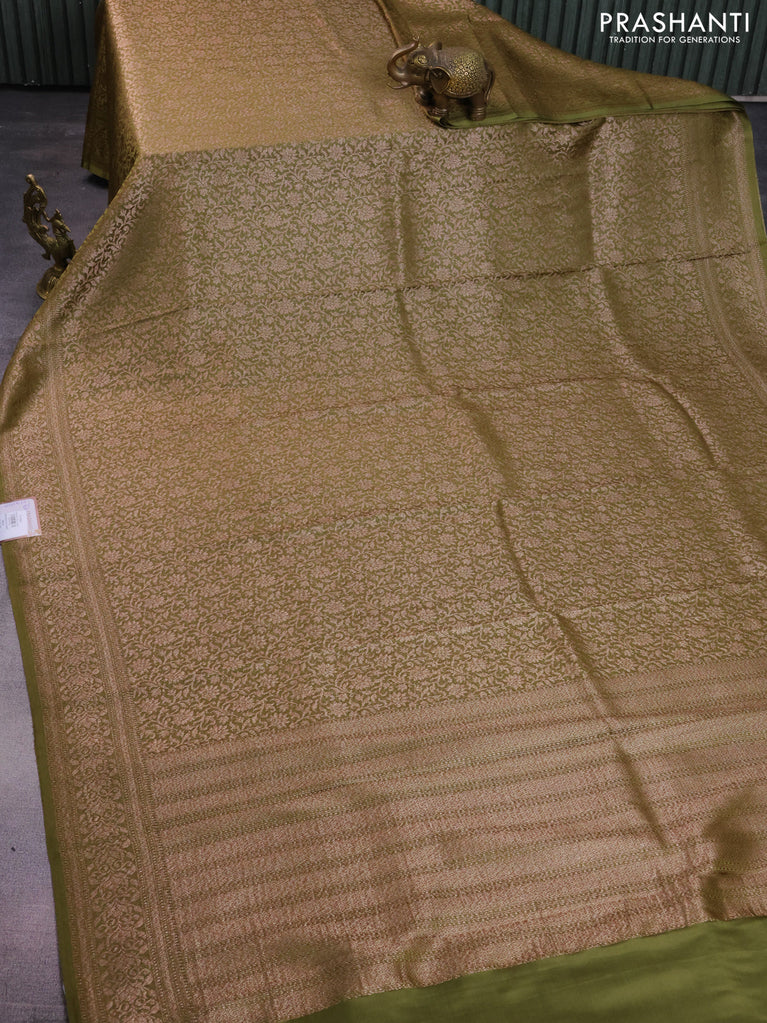 Banarasi semi crepe saree miltary green with allover thread & zari woven brocade weaves and woven border