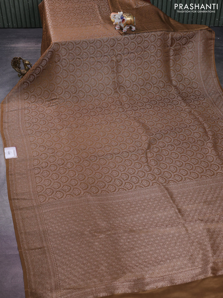 Banarasi semi crepe saree mehendi green with allover thread & zari woven brocade weaves and woven border