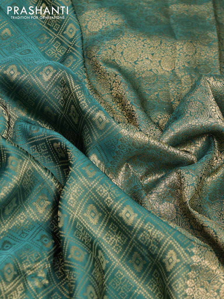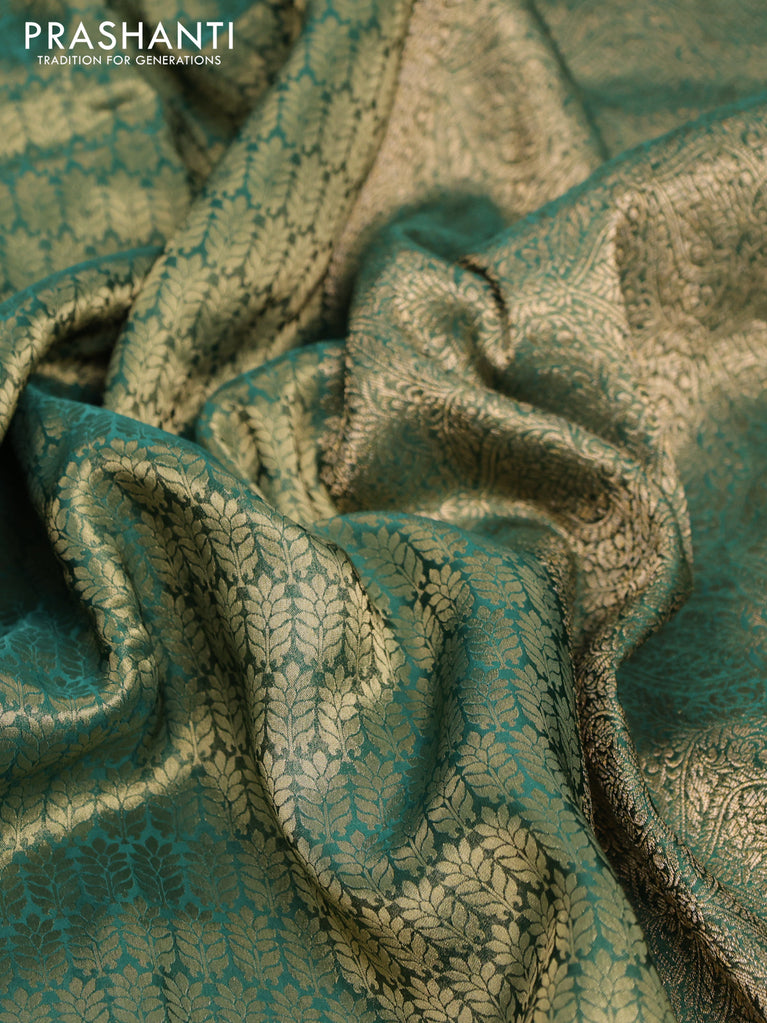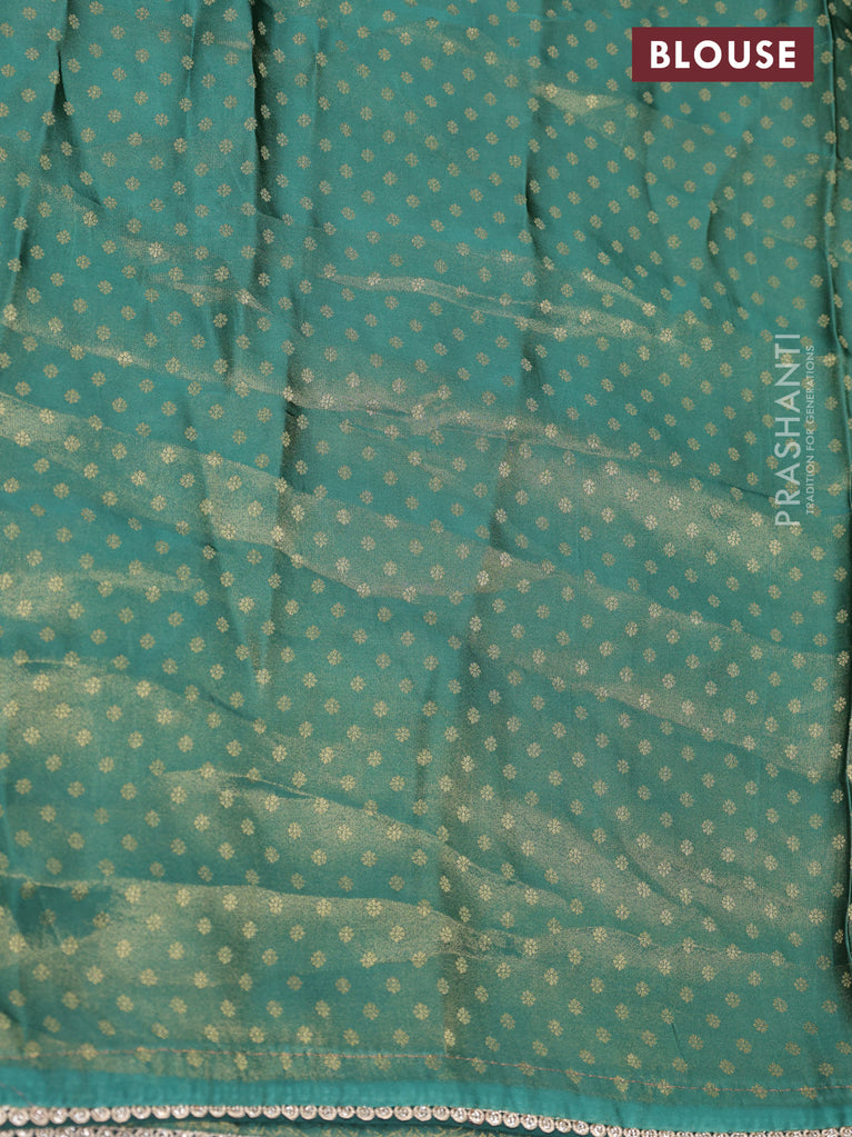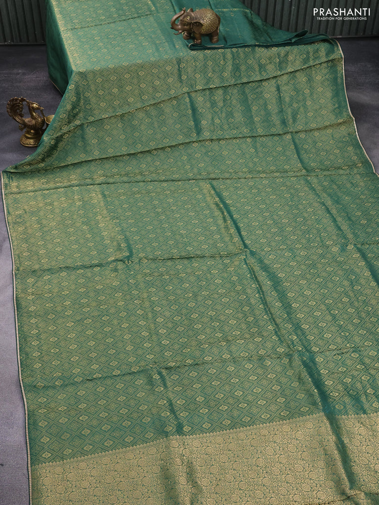 Banarasi semi crepe saree green with allover zari woven brocade weaves and lace work border
