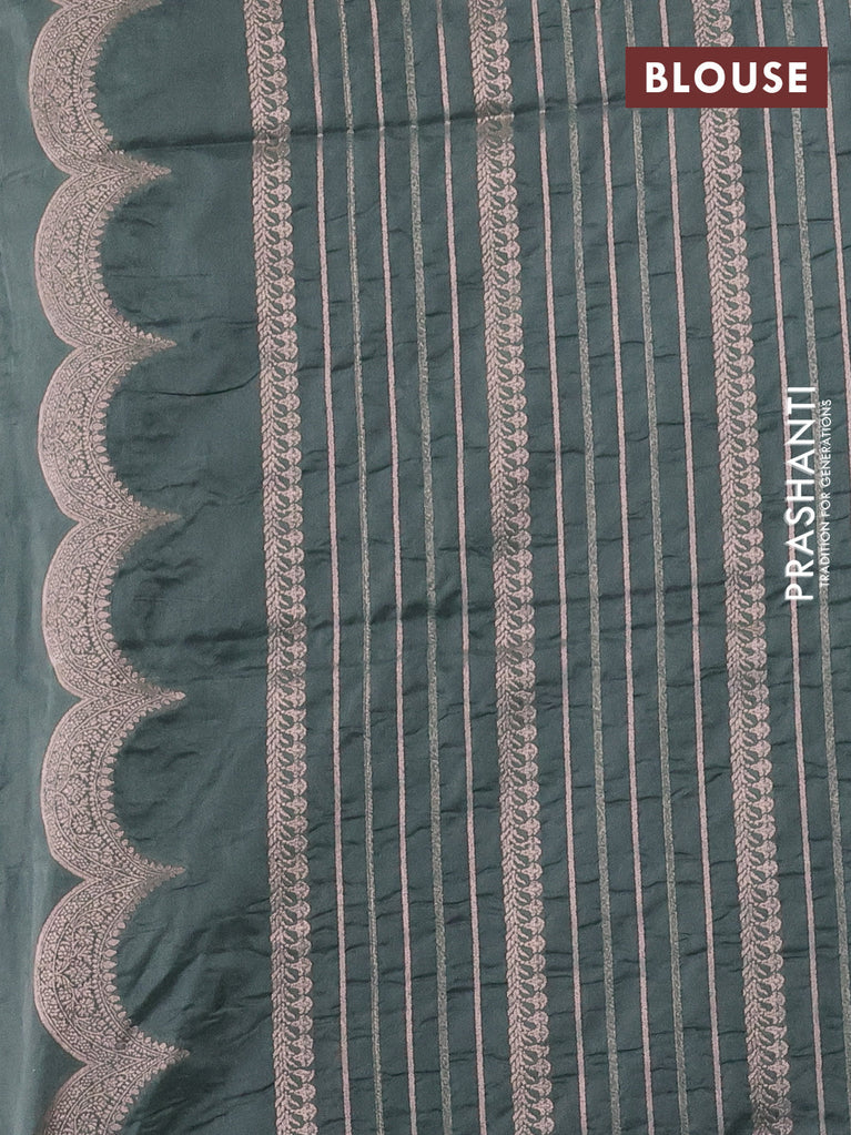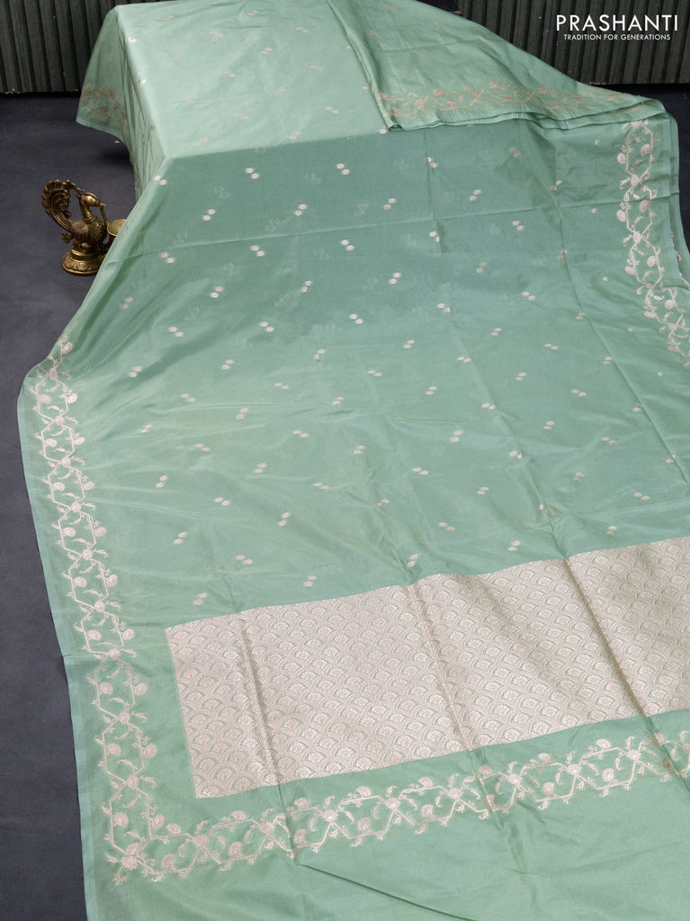 Banarasi semi katan saree pastel green with zari woven buttas and zari woven border