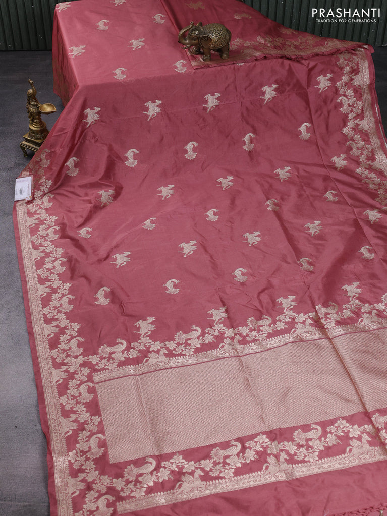 Banarasi semi katan saree pastel maroon with zari woven buttas and zari woven border