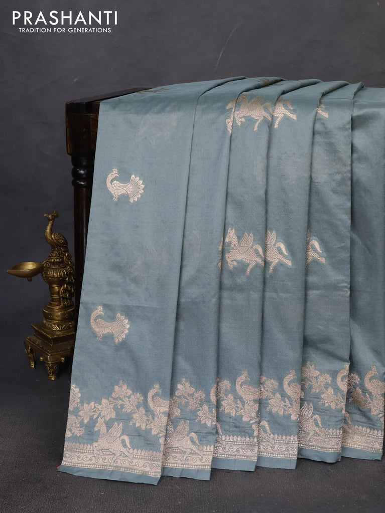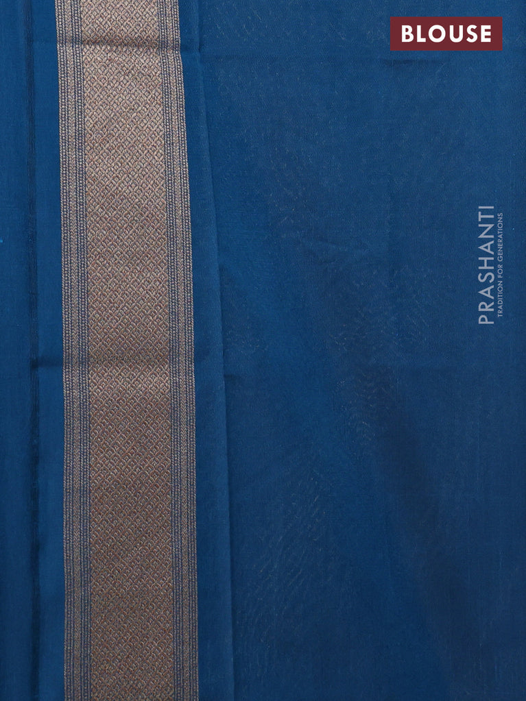 Banarasi semi katan saree peacock blue with allover thread & zari weaves and woven border