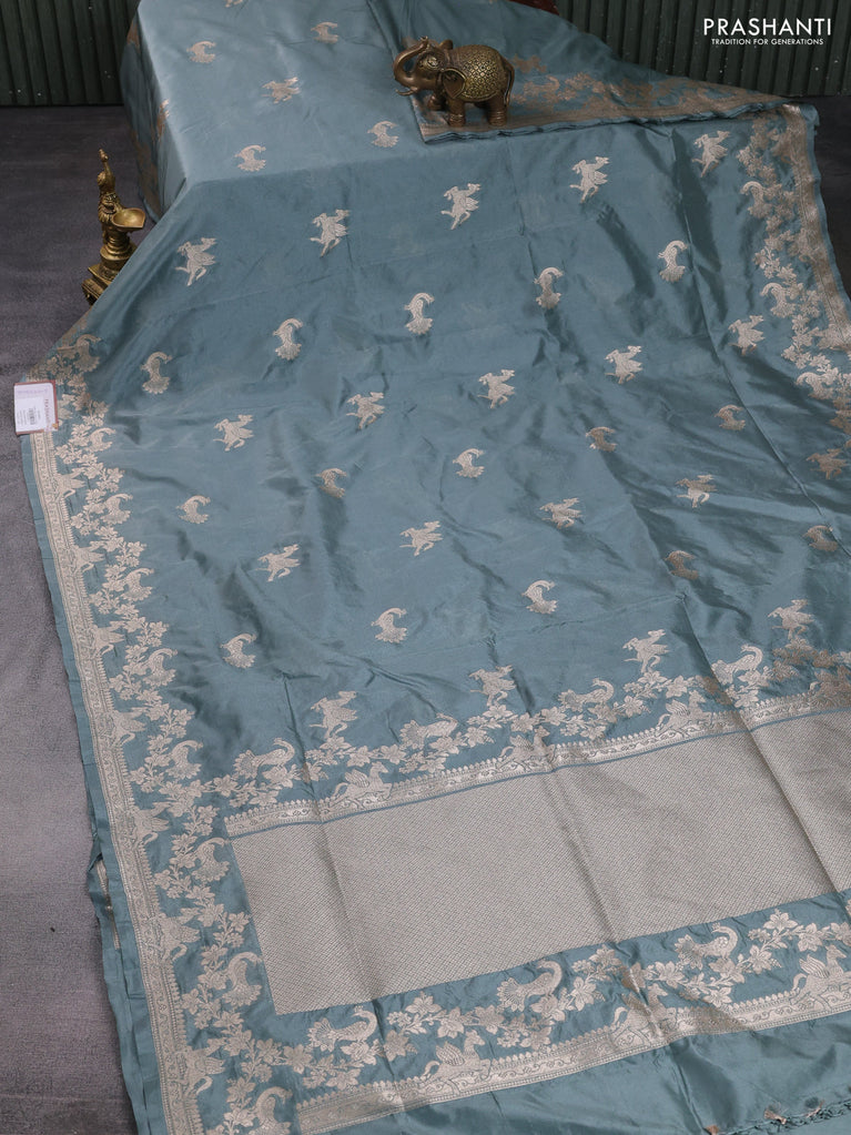 Banarasi semi katan saree pastel blue with zari woven buttas and zari woven border