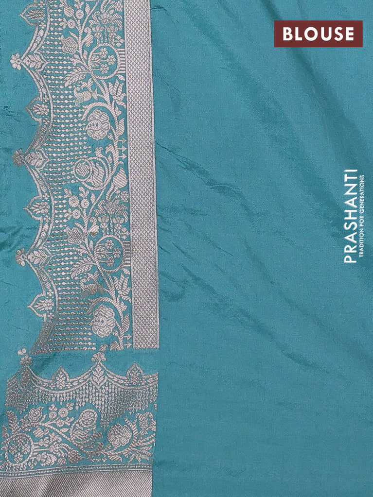 Banarasi semi katan saree peacock blue with allover thread & zari woven brocade pattern and woven border