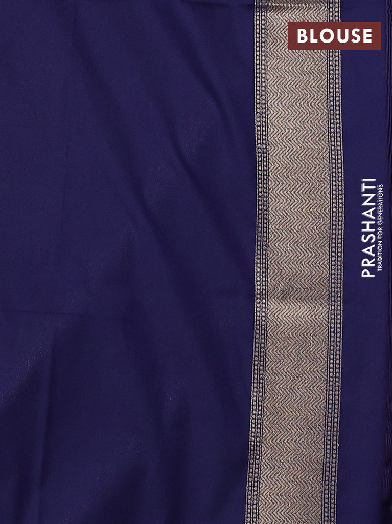 Banarasi semi katan saree navy blue with allover thread & zari woven brocade weaves and woven border
