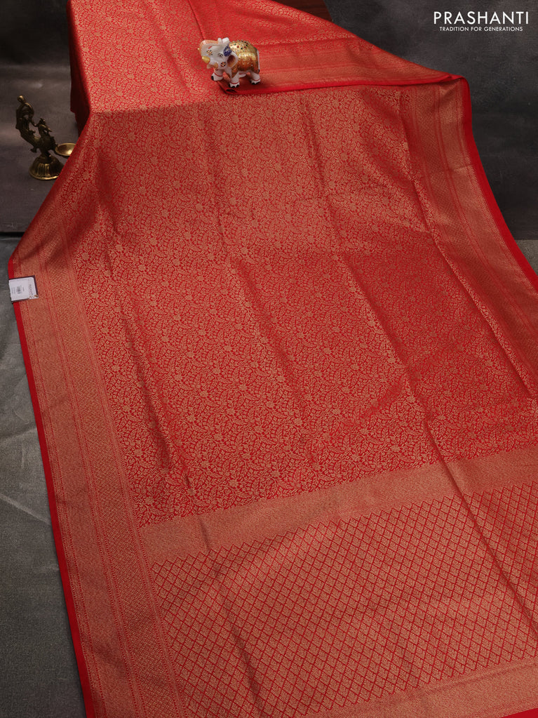 Banarasi semi katan saree red with allover thread & zari brocade weaves and woven border