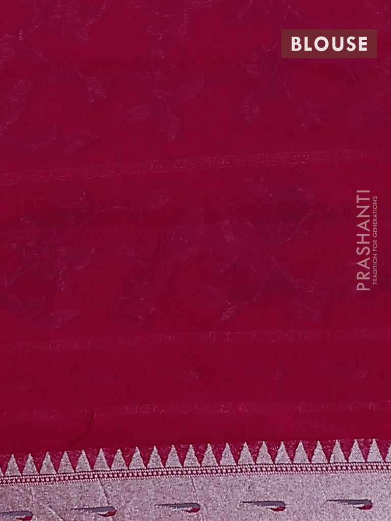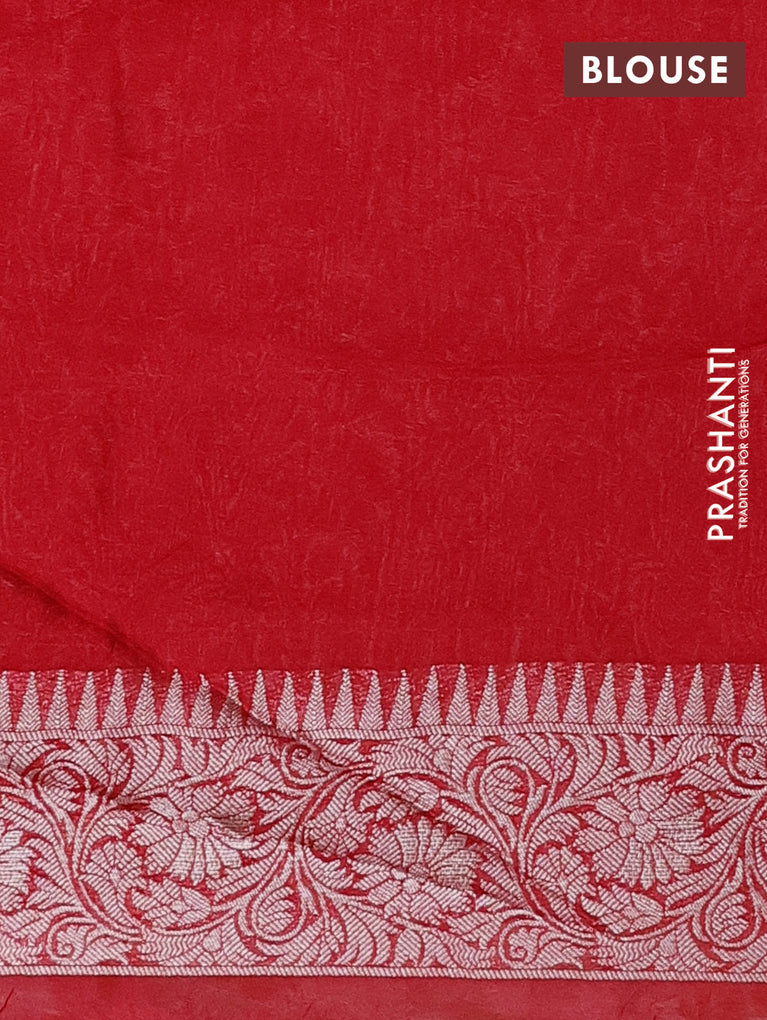 Banarasi semi raw silk saree red with allover silver zari woven brocade weaves and floral design paithani border