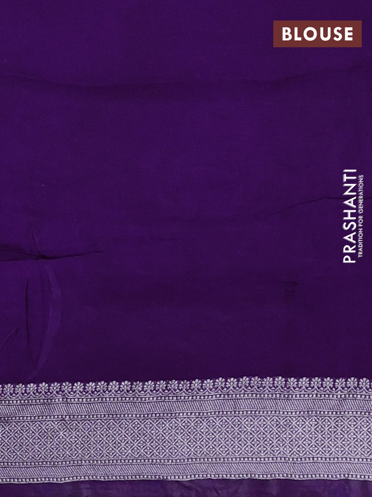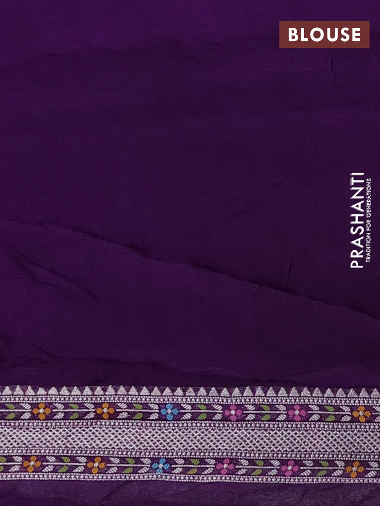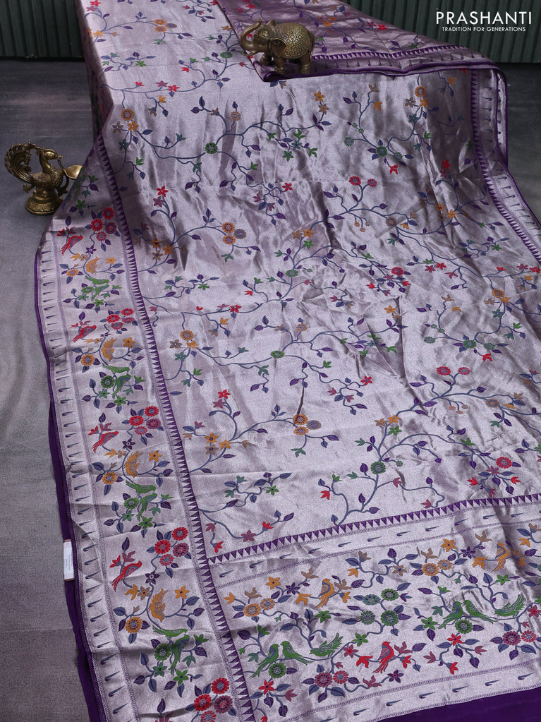 Banarasi semi raw silk saree violet with allover silver zari woven paithani weaves and silver zari woven border