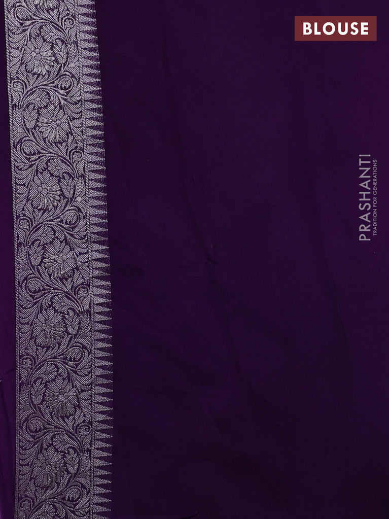 Banarasi semi raw silk saree violet with allover silver zari woven brocade weaves and floral design paithani border